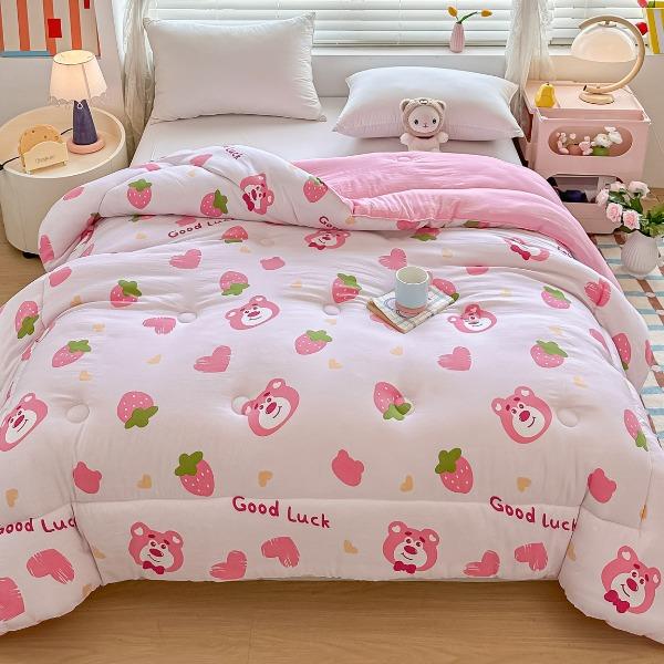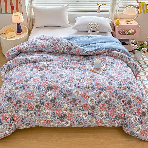 1:适合裸睡,手感舒适细腻软糯透气性好,陪伴你一天好心情 睡眠质量up!会呼吸更透气 2:大豆纤维填充软糯睡眠up!享受健康睡眠 3:健康舒适纤维,大豆蛋白加工制成媲美羊绒的柔软触感,棉的保暖性,绵软不易结团 4尺寸 :200*230cm 重量:约2.5kg 包装: 彩盒