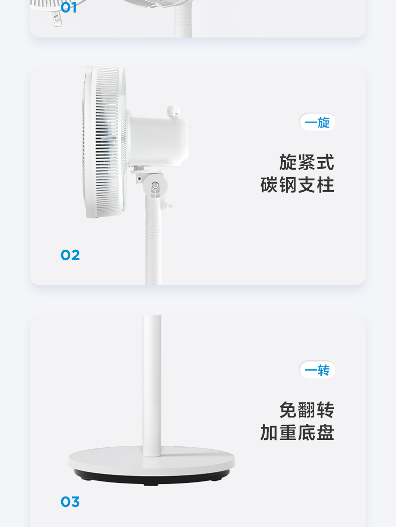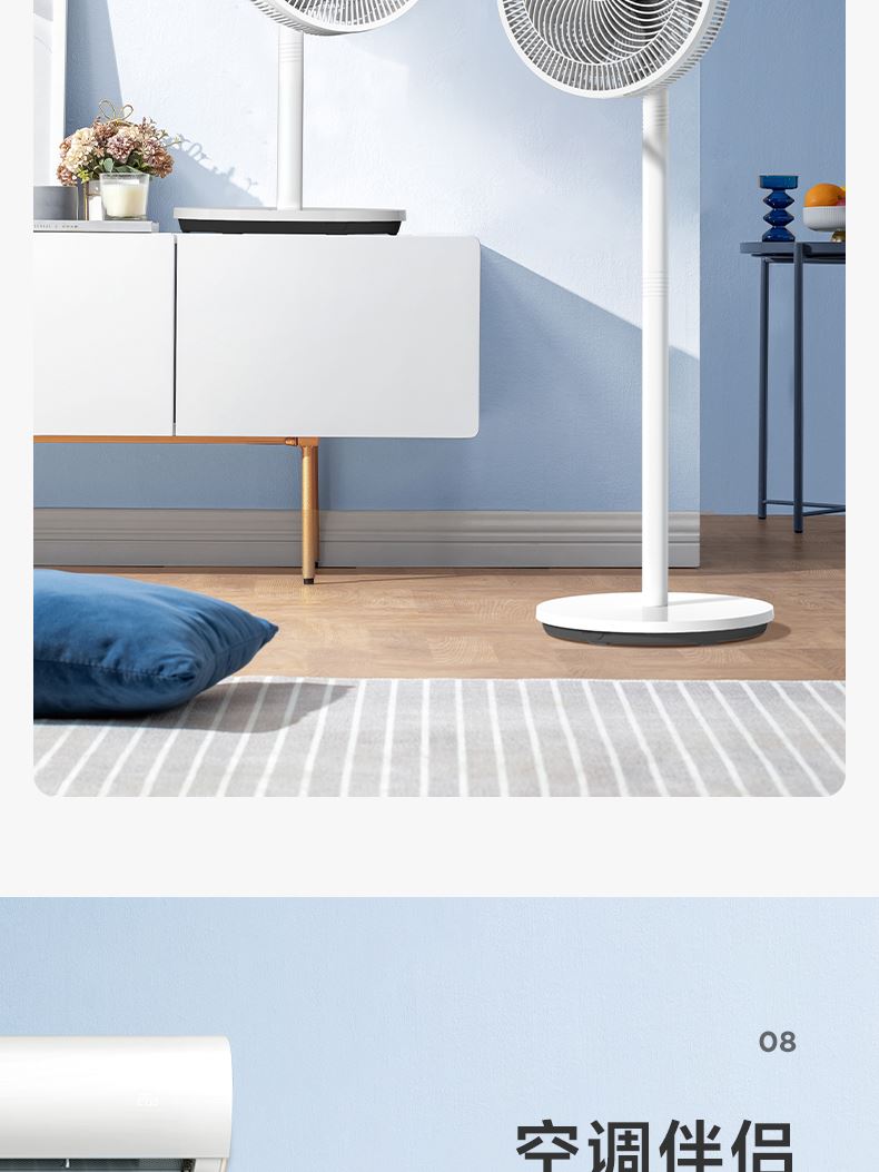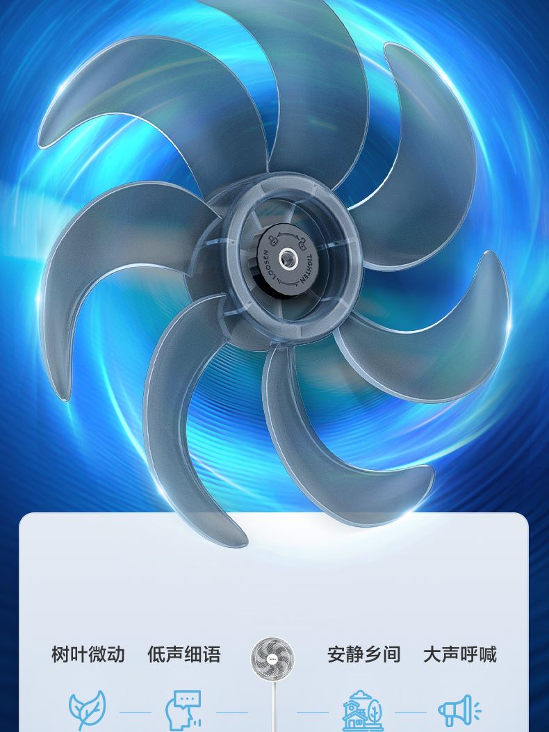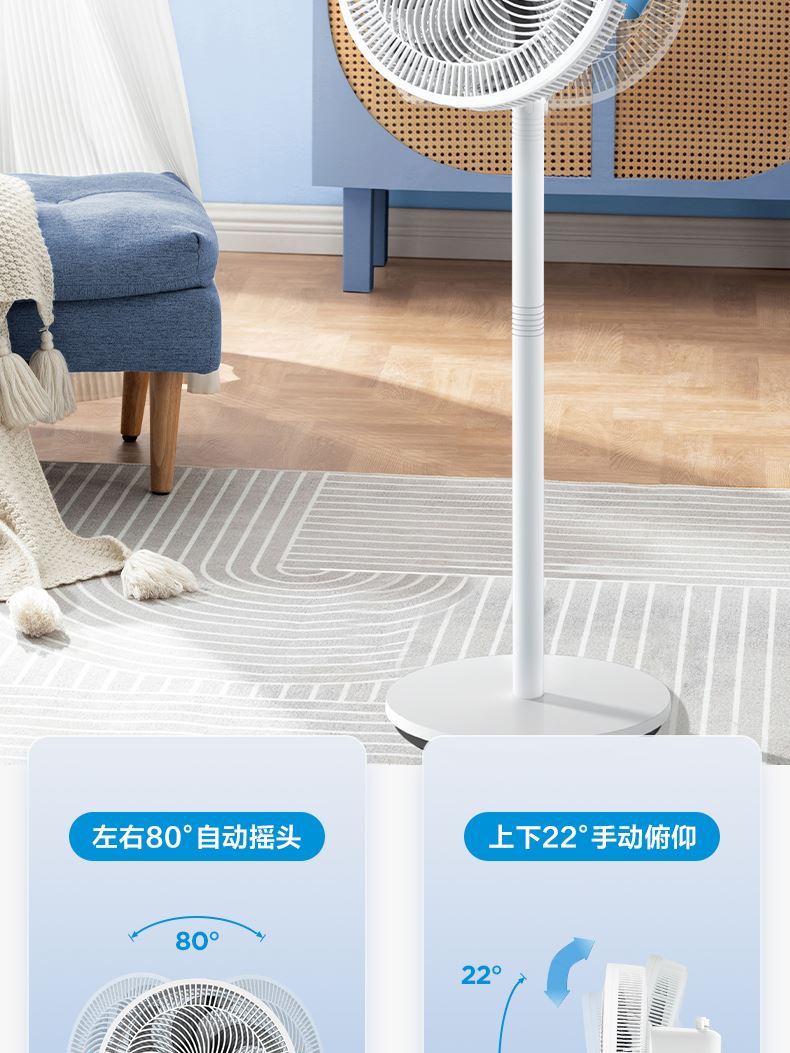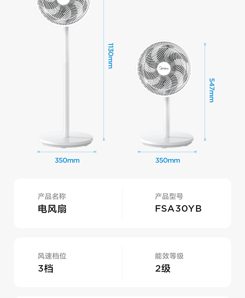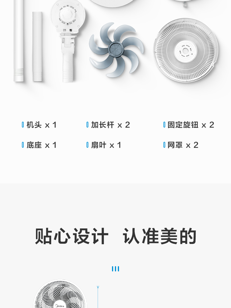 产品尺寸:350 x 342 x 1130 mm 包装尺寸:568 x 207 x 385 mm 产品毛重:5.9 kg 产品特点: 七片风叶,三档风速; 电机10年质保,品质可靠; 立柱可自由拼接,台地两用; 左右自动摇头,广角送风,上下手动俯仰; 易安装,易拆洗; 主机、说明书