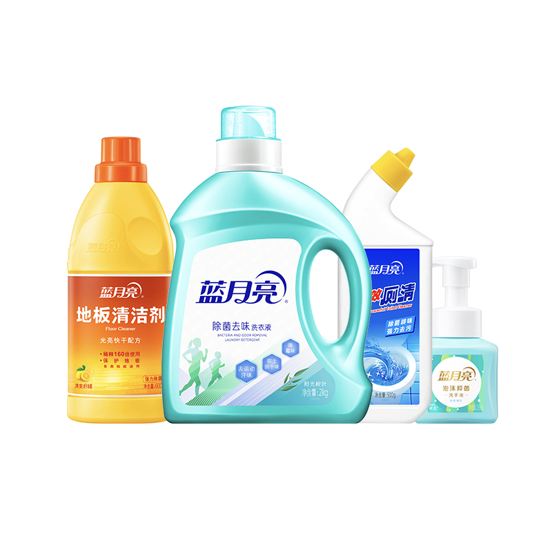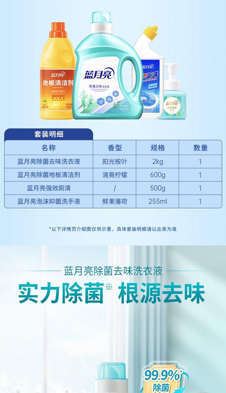 蓝月亮洗衣液 净味件套 2kg去味洗衣液-桉叶+600g地板水+500g厕清+255ml鲜果薄荷泡沫洗手液