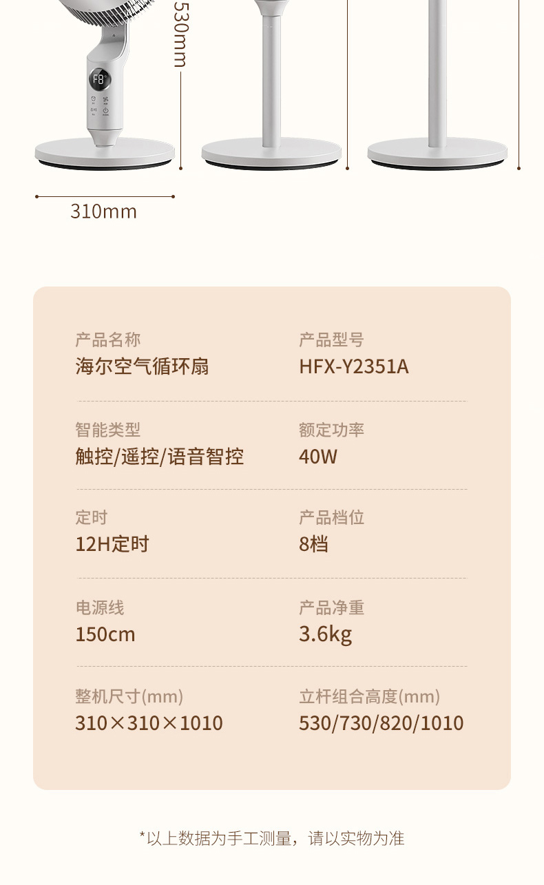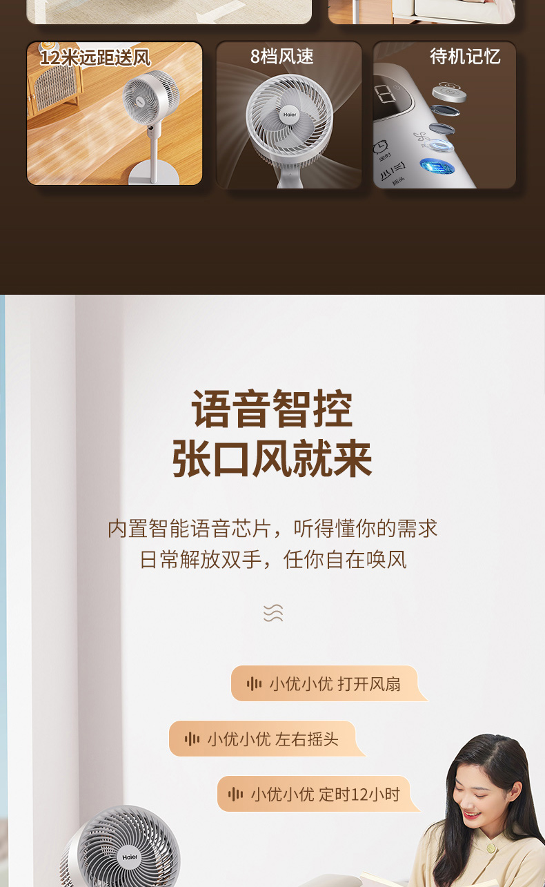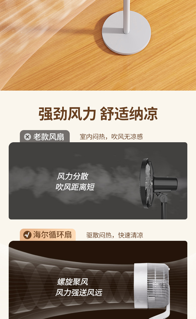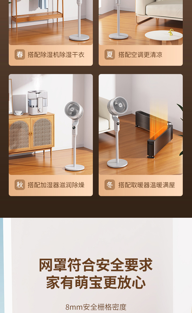3D 立体循环送风:上下左右自动摇头,涡轮风道,12 米远距送风,快速全屋对流换气。 轻音低噪:运行安静(约 50dB),不扰睡眠,舒适柔风不直吹。 多档风速 + 定时:3/8 档风速(按版本), 12 小时定时,适配不同场景需求。 台地两用:可升降、可拆杆,落地 / 台式自由切换,客厅卧室书房通用。 节能安全:40W 低功率省电,过热保护,ABS 机身稳固耐用。