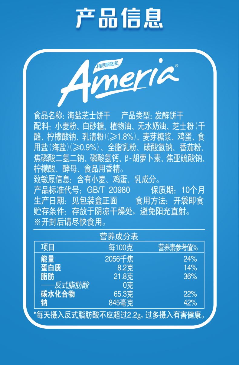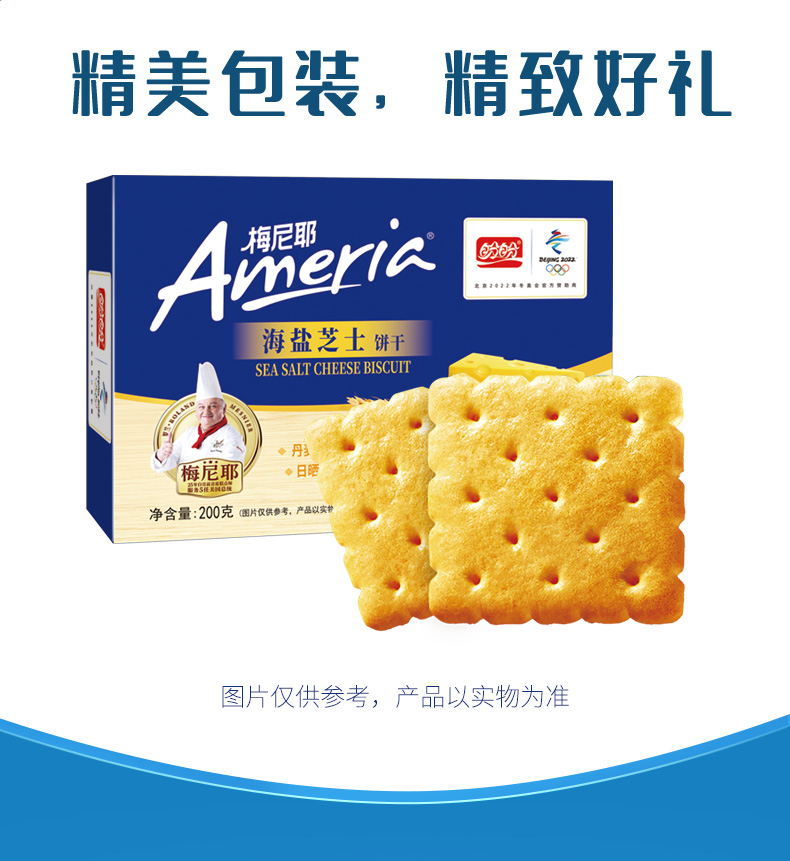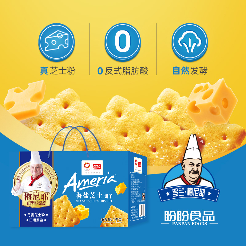 规格:200g 盼盼海盐芝士饼干200g,一口就爱! 芝士粉与海盐,咸甜碰撞超上头。经6小时自然发酵,饼干疏松多孔,口感巨松脆,吃多也不干嘴。 独立小包装,方便携带,0反式脂肪酸,健康又美味 。