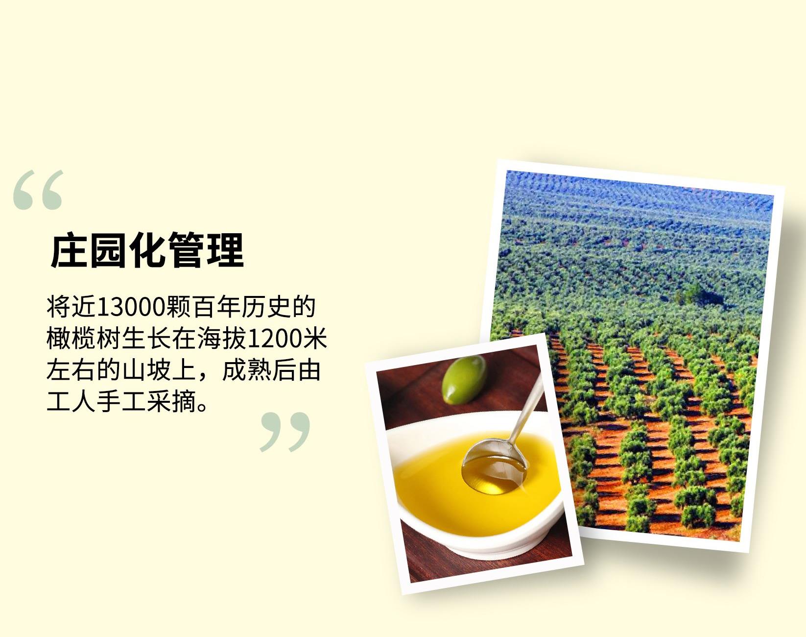 产地:西班牙 级别:西班牙进口特级初榨橄榄油 橄榄品种:Moraiolo(莫拉约) 土壤:石灰质土 色泽:绿色 净含量:500毫升X2 庄园化管理 将近13000颗百年历史的橄榄树生长在海拔1200米左右的山坡上,成熟后由工人手工采摘。 精选原料 每年十月下旬到11月初前一批采摘的莫莱罗橄榄果中精选出一部分,在12小时内压榨而成。 品质保证 橄榄油口味香醇,颜色通透,被誉为地中海的厨房王子。