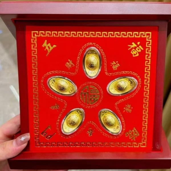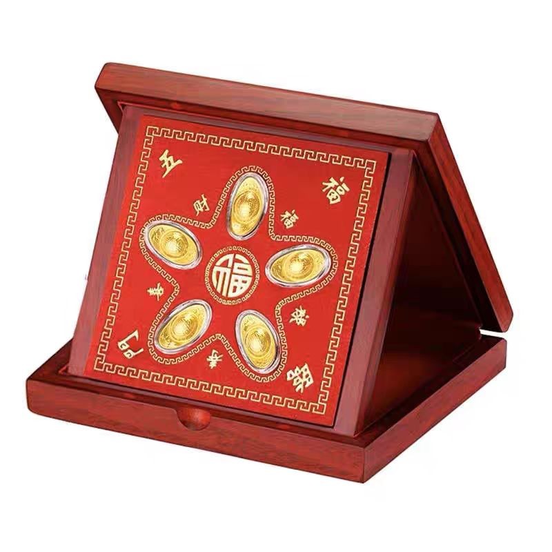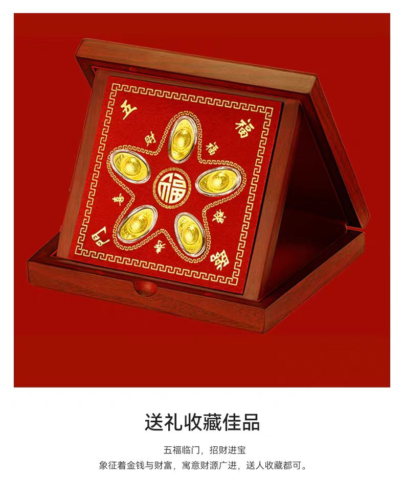 聚运鑫五福临门黄金元宝摆件保险银行礼
