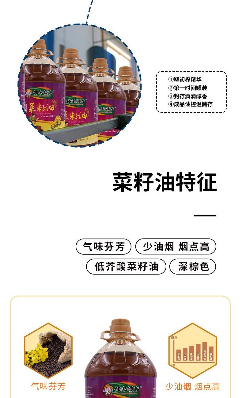 邻家饭香非转基因物理压榨二级菜籽油5L/桶LJFX156