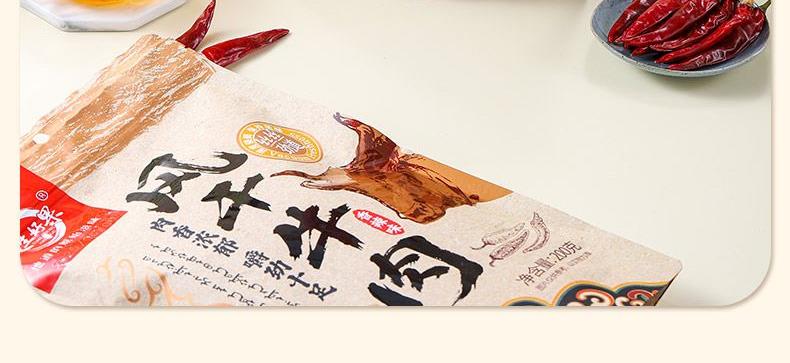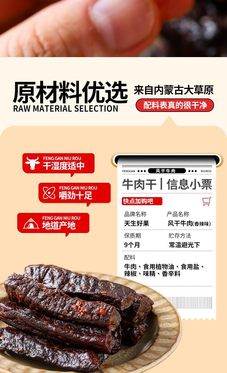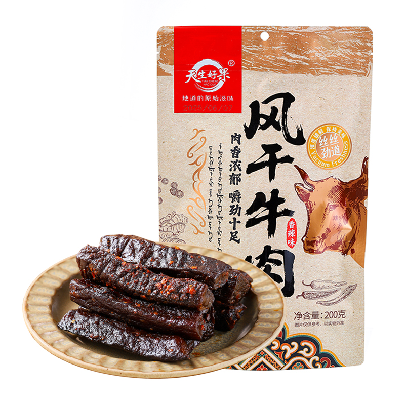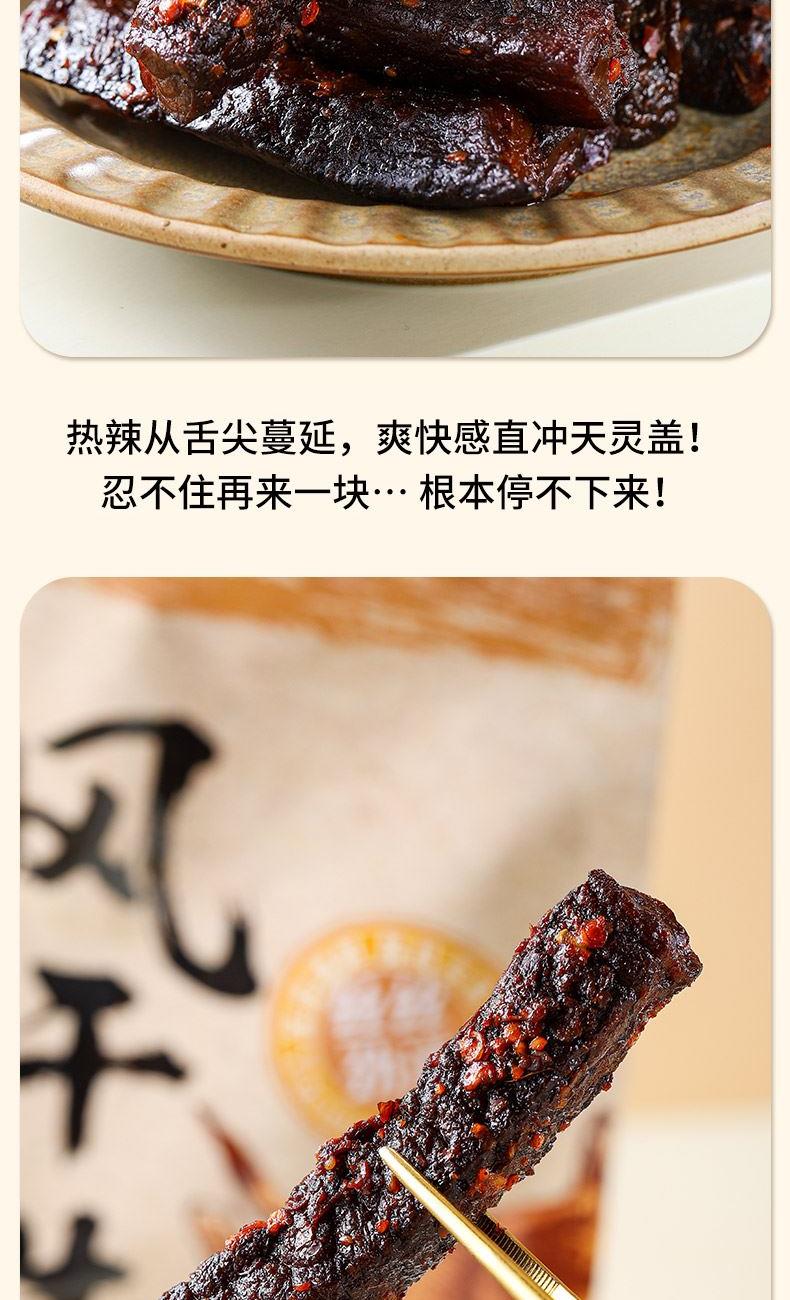 甄选原料,大块原切,麻辣鲜香,嚼劲十足;传统风干工艺,保留牛肉浓郁香味