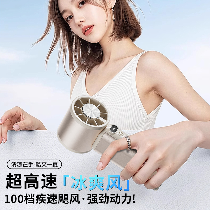 *100档风力可调节,带冰敷制冷功能 *铝合金机身,高清数显屏 *迷你小巧,12800rpm *3600毫安电池