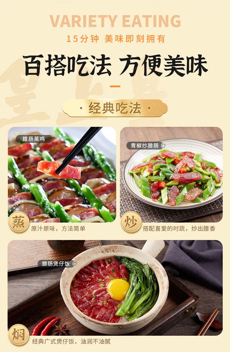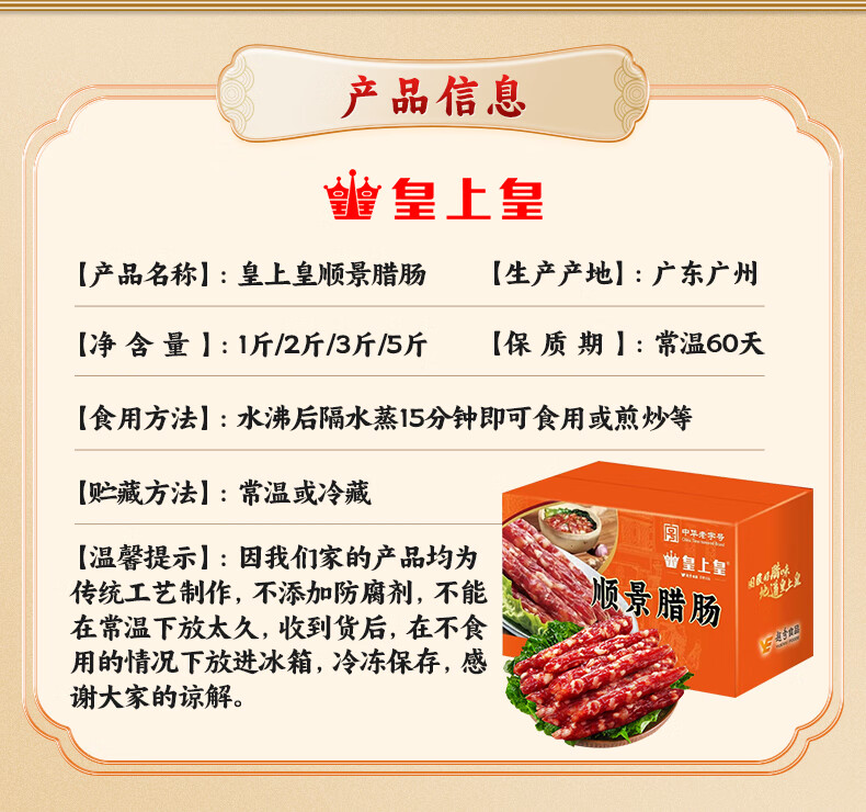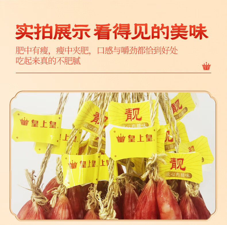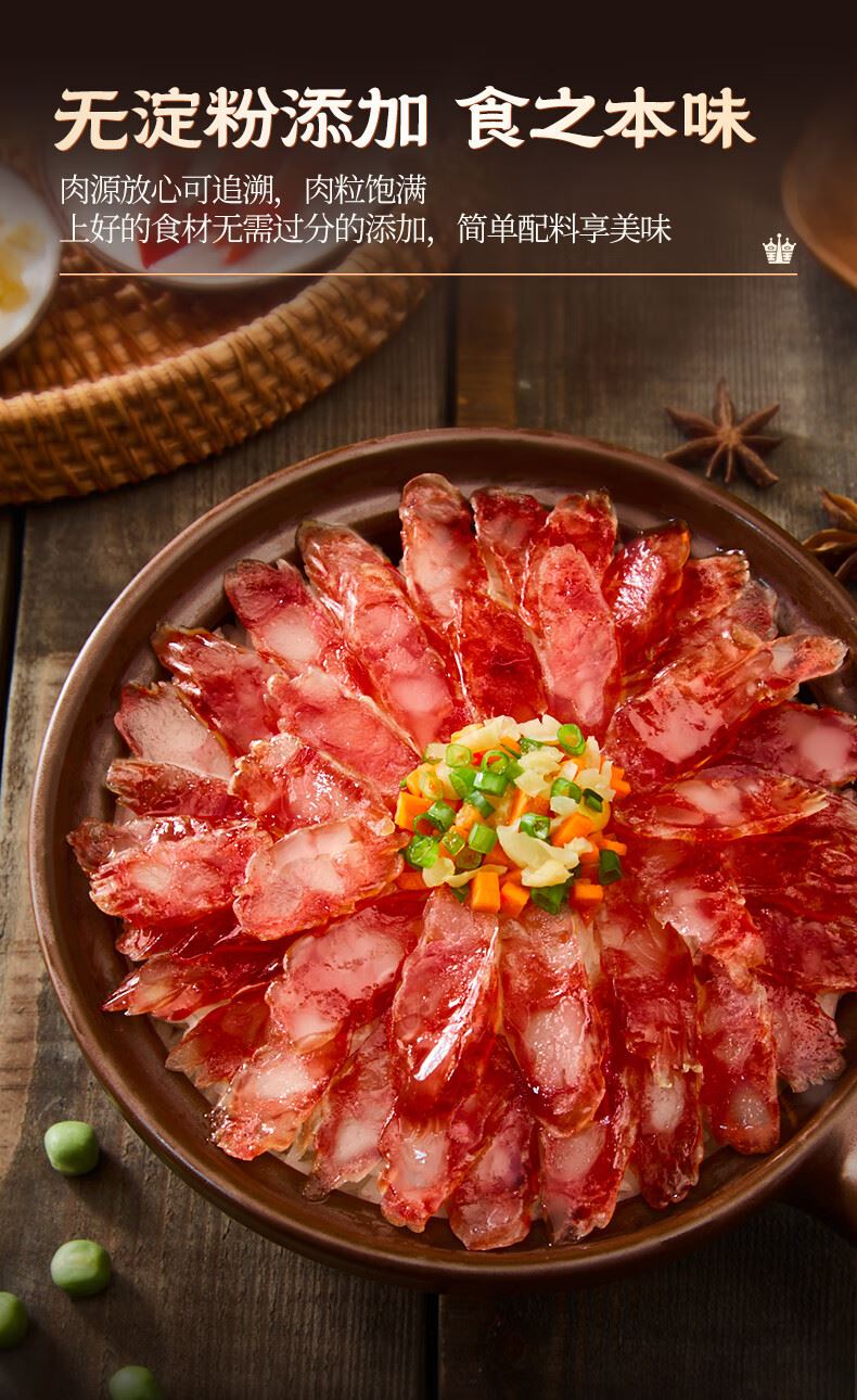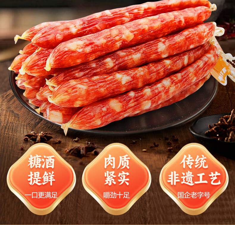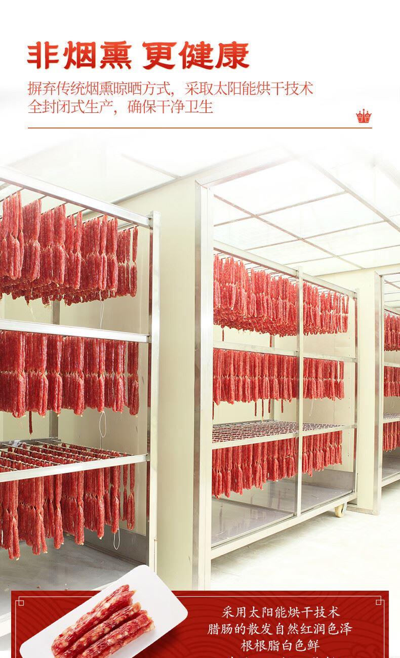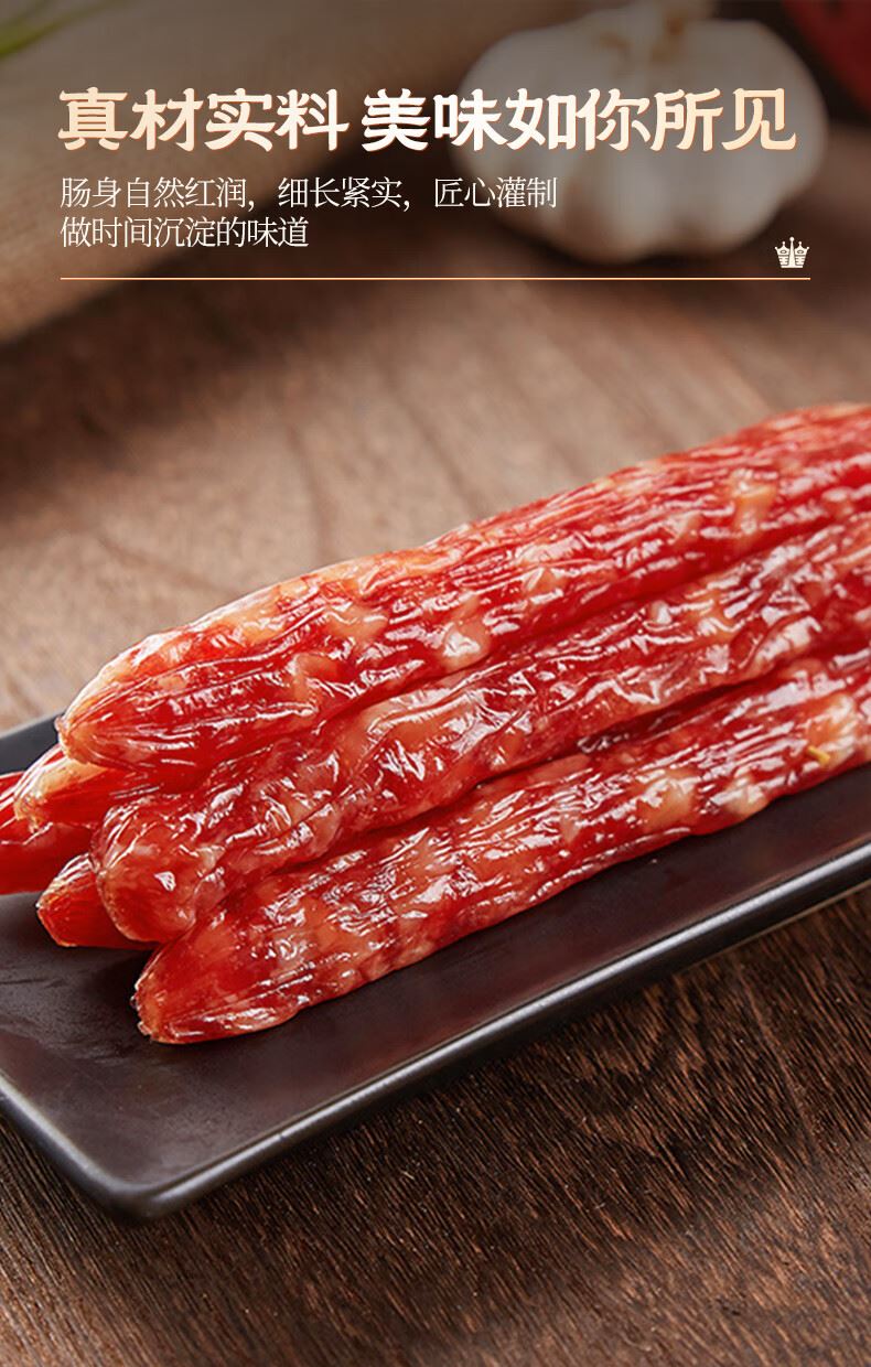 产地:广东 特产品类:广式腊肠 包装形式:袋装 食用方法:烹饪食用 加工工艺:烘干 保质期:360天
