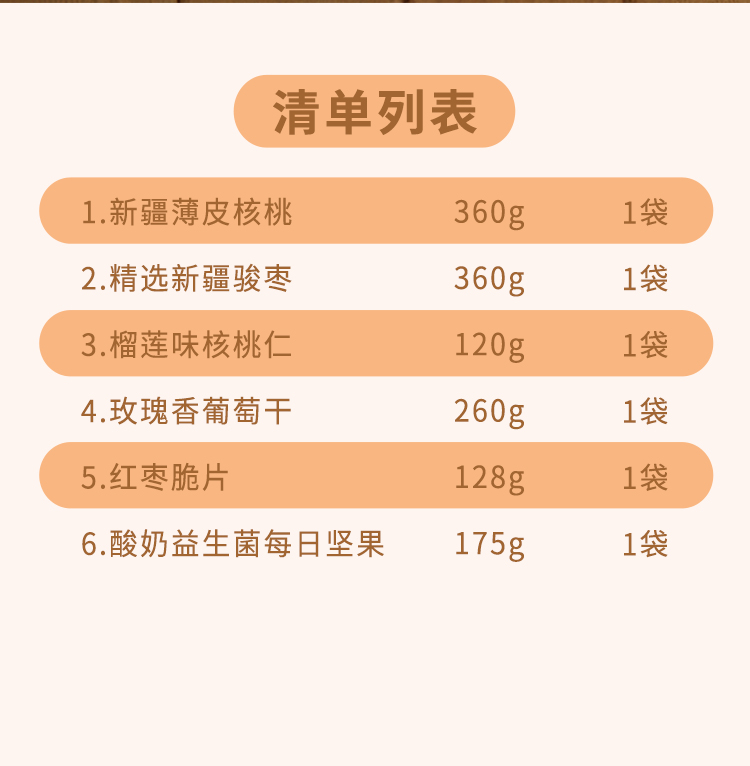 送礼有面 新疆特产 产地直发 新疆薄皮核桃360g*1 精选新疆骏枣360g*1 榴莲核桃仁120g*1 玫瑰香葡萄干260g*1 红枣脆片128g*1 酸奶益生菌每日坚果175g*1 新疆印象·坚果盛宴小号礼盒*1
