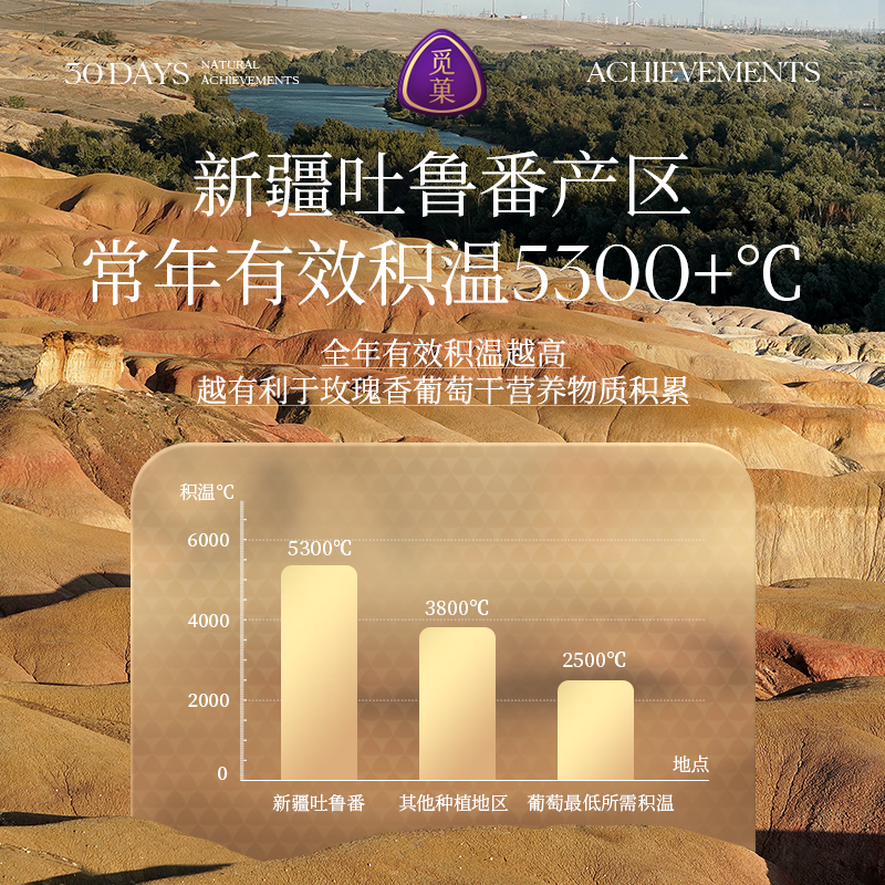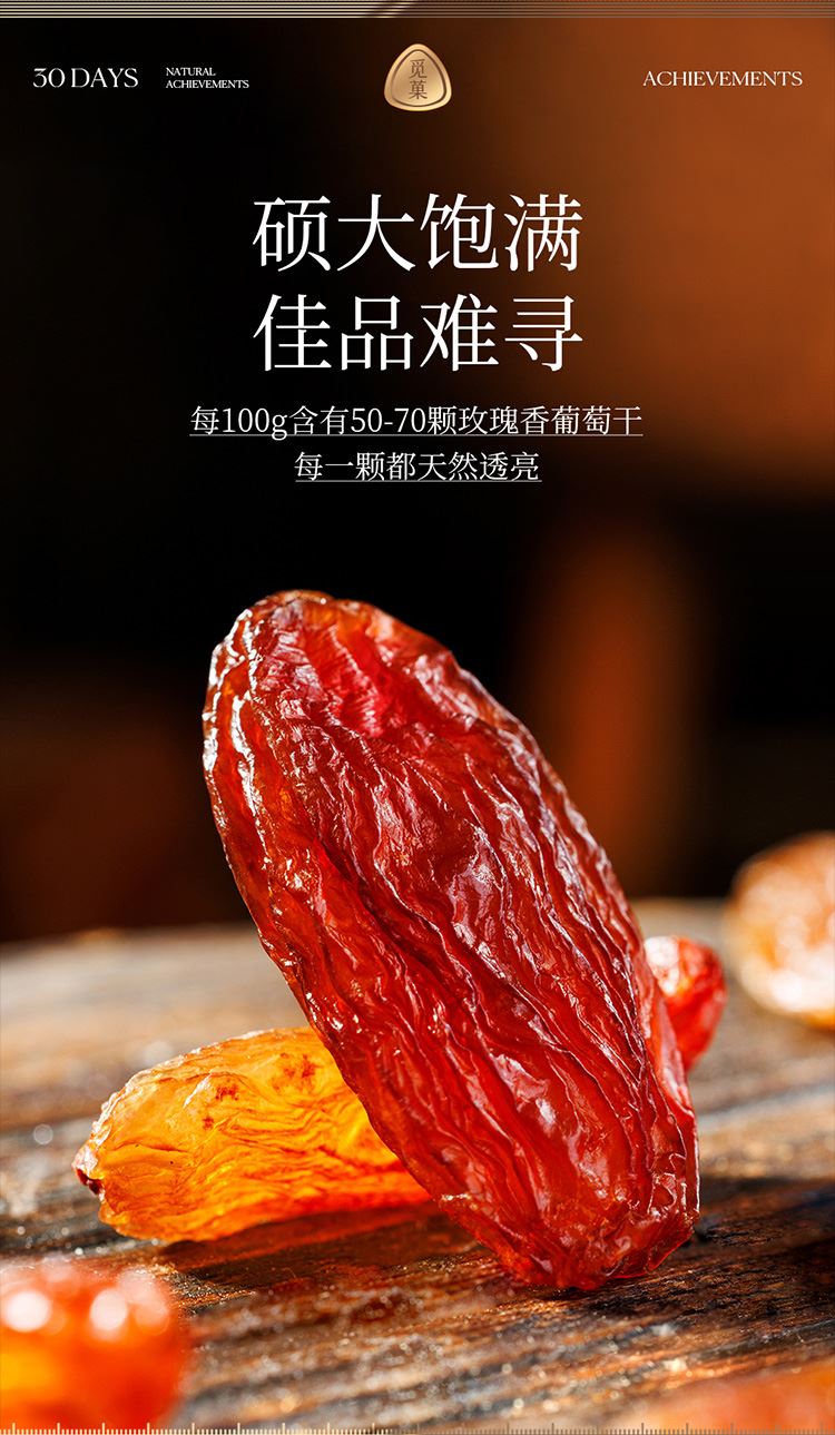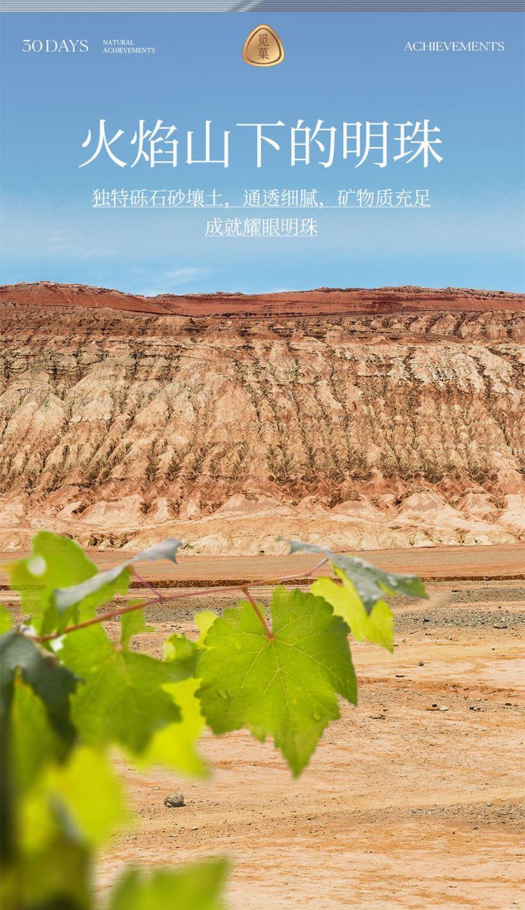 火焰明珠 独特砾石砂壤土 通透细腻 ,矿物质充足 成就耀眼明珠 果肉纯净 果肉半凝溏心 甘甜玫瑰沁香 多酚焕颜 每100g玫瑰香葡萄干 含有151.5mg总多酚