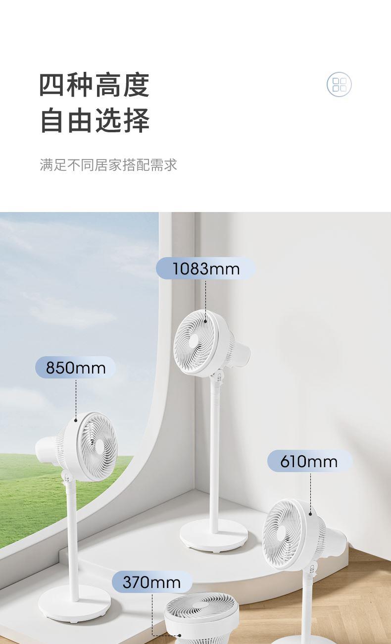 产品规格: 国际条码:6939924859385 产品尺寸:300 x 300 x 1100 mm 包装尺寸:609 x 267 x 408 mm 产品毛重:6kg 集采100台起 产品特点: 三档及以上风速调节,变频,静音,带遥控、定时 18.5m3/h大风量,全屋好清凉 音轻17dB(A),不扰清凉 9挡风速,3种风类 加速空气流通,全屋循环清凉