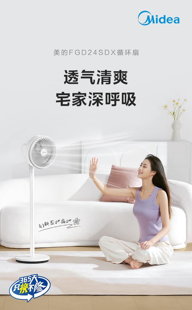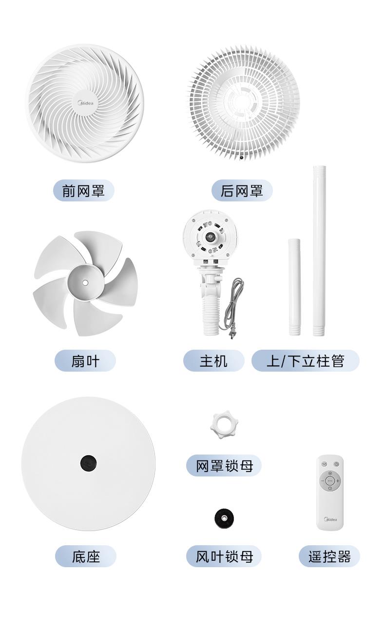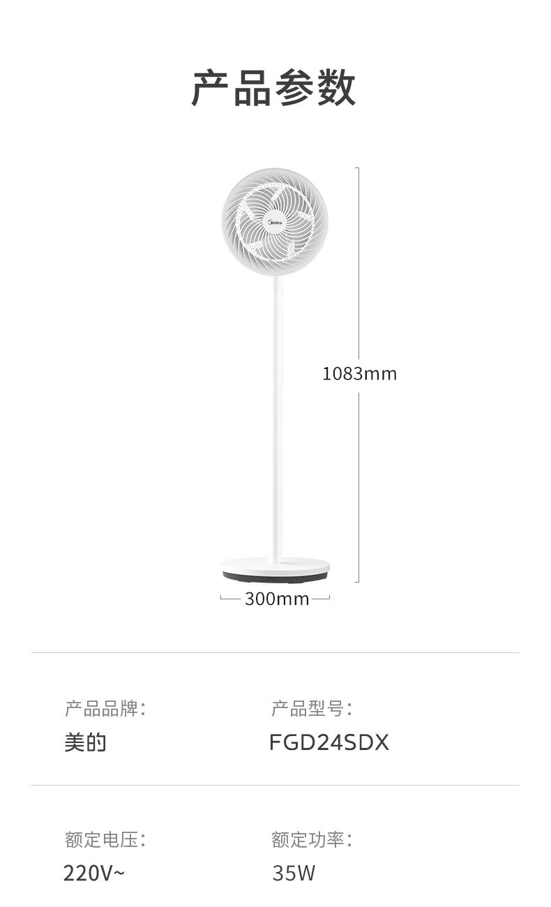 美的变频多档调节大风力落地扇可定时循环扇FGD24SDX
