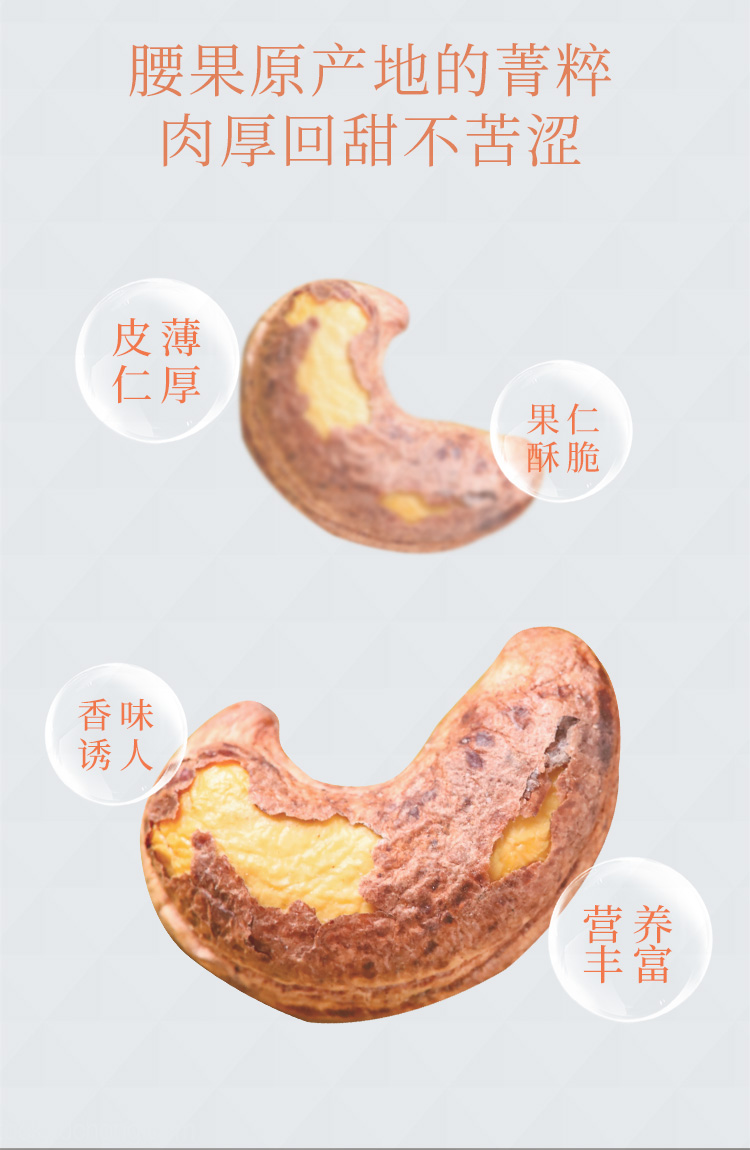 腰果原产地青粹,肉厚回甜不苦涩,自然裂熟,人工采摘