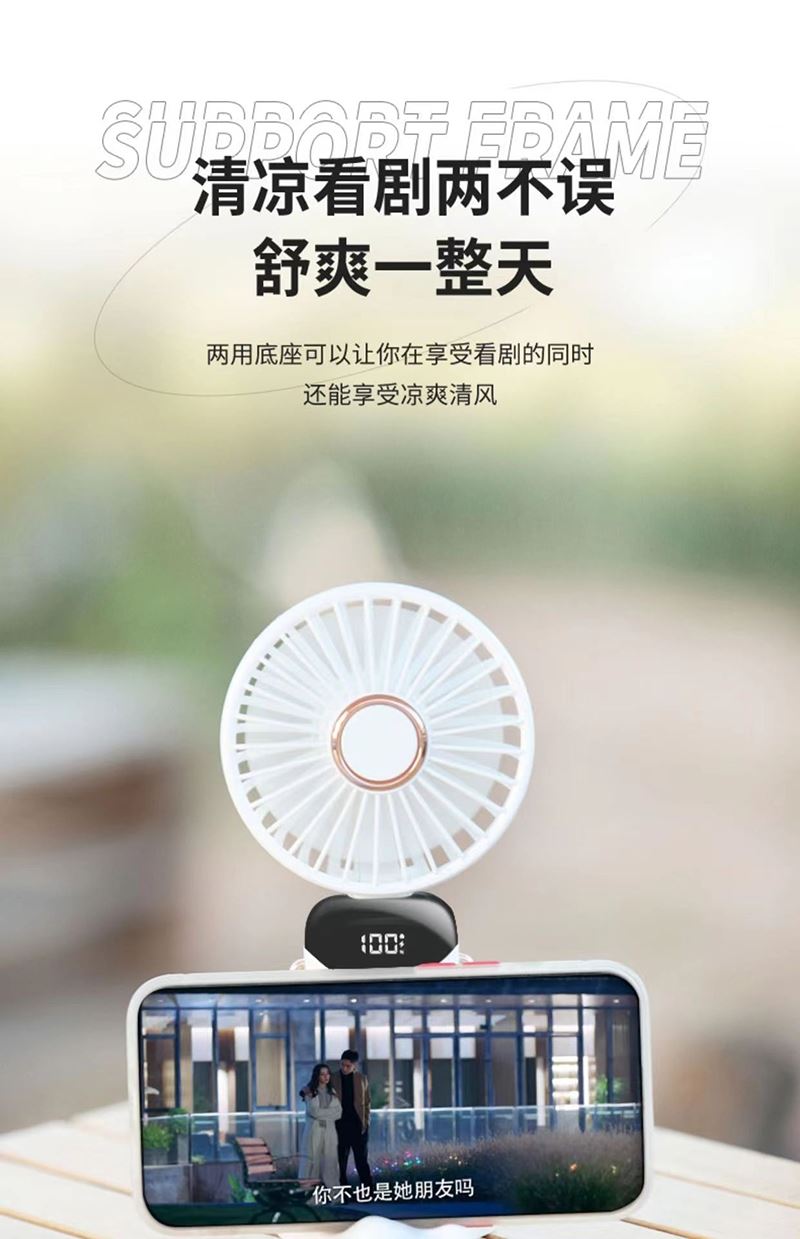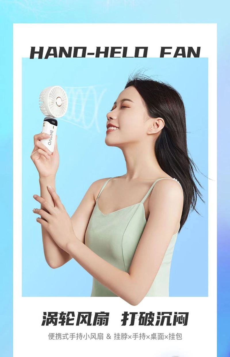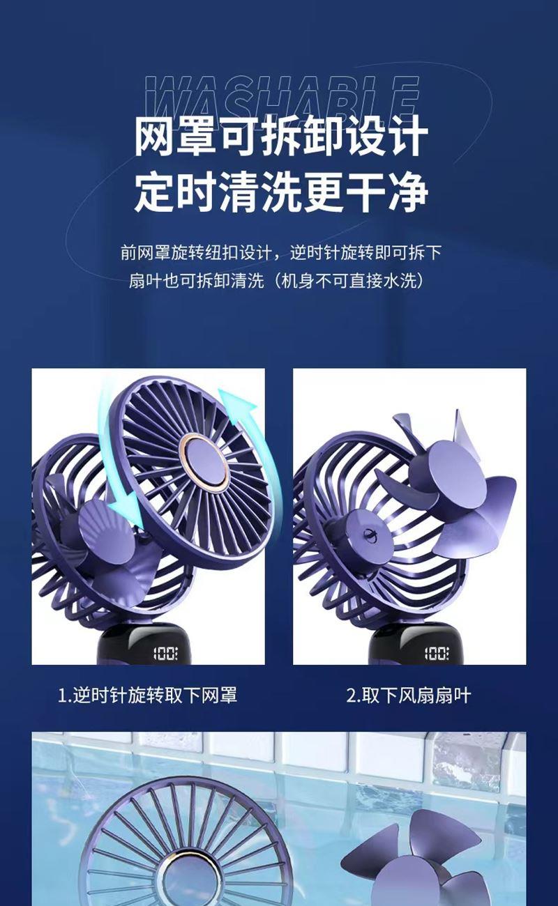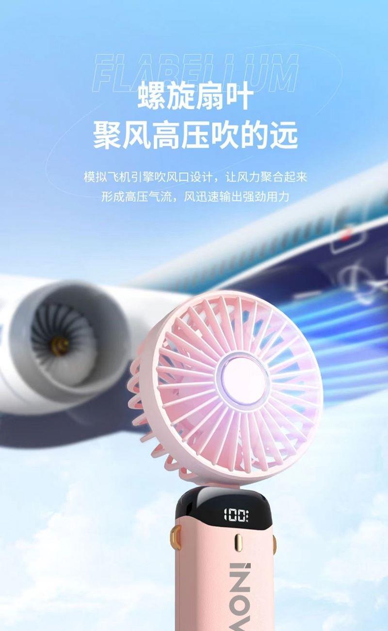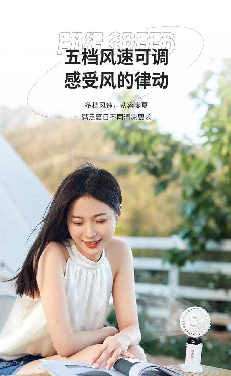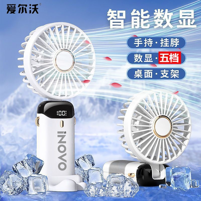 爱尔沃手持折叠小风扇5档调节数显电量
