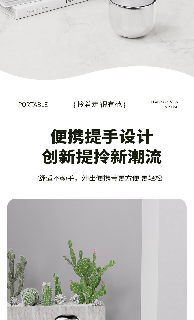 材 质:316不锈钢、食品级pp 规 格:1000ml 颜 色:珍耀白/孔雀绿 装 箱 数:20pcs/箱 内胆材质采用316不锈钢,健康环保。 PP材质塑件,热工艺原理结构设计,食品级健康环保。 内壁表面采用电解研磨技术,不生锈不氧化,防止污垢产生,易清洗。 不锈钢盖设计,健康环保,清洗方便。 便携式提手设计,出行更方便,更轻松。 时尚外观设计,高贵大方,质感非凡。