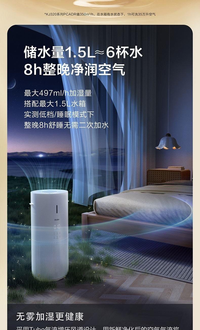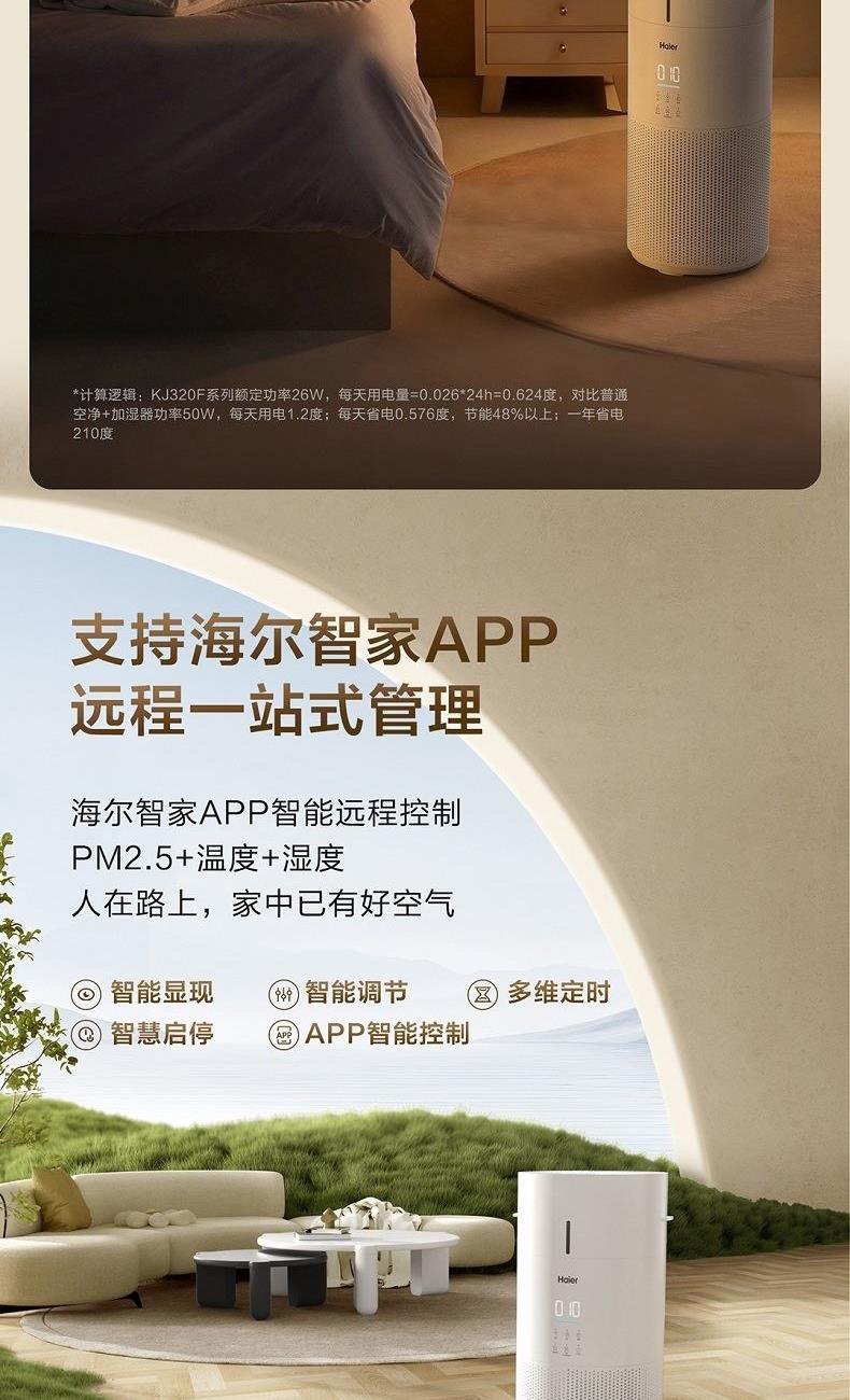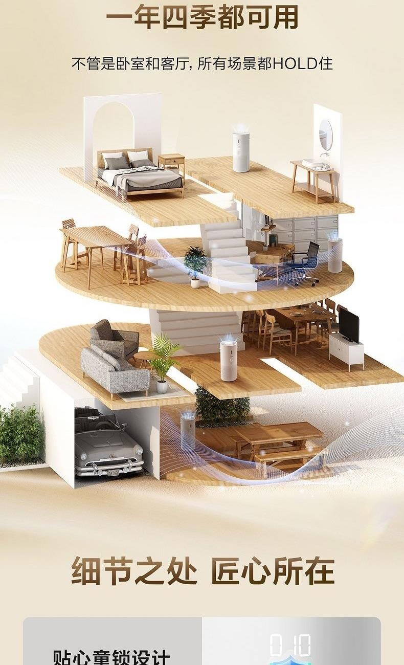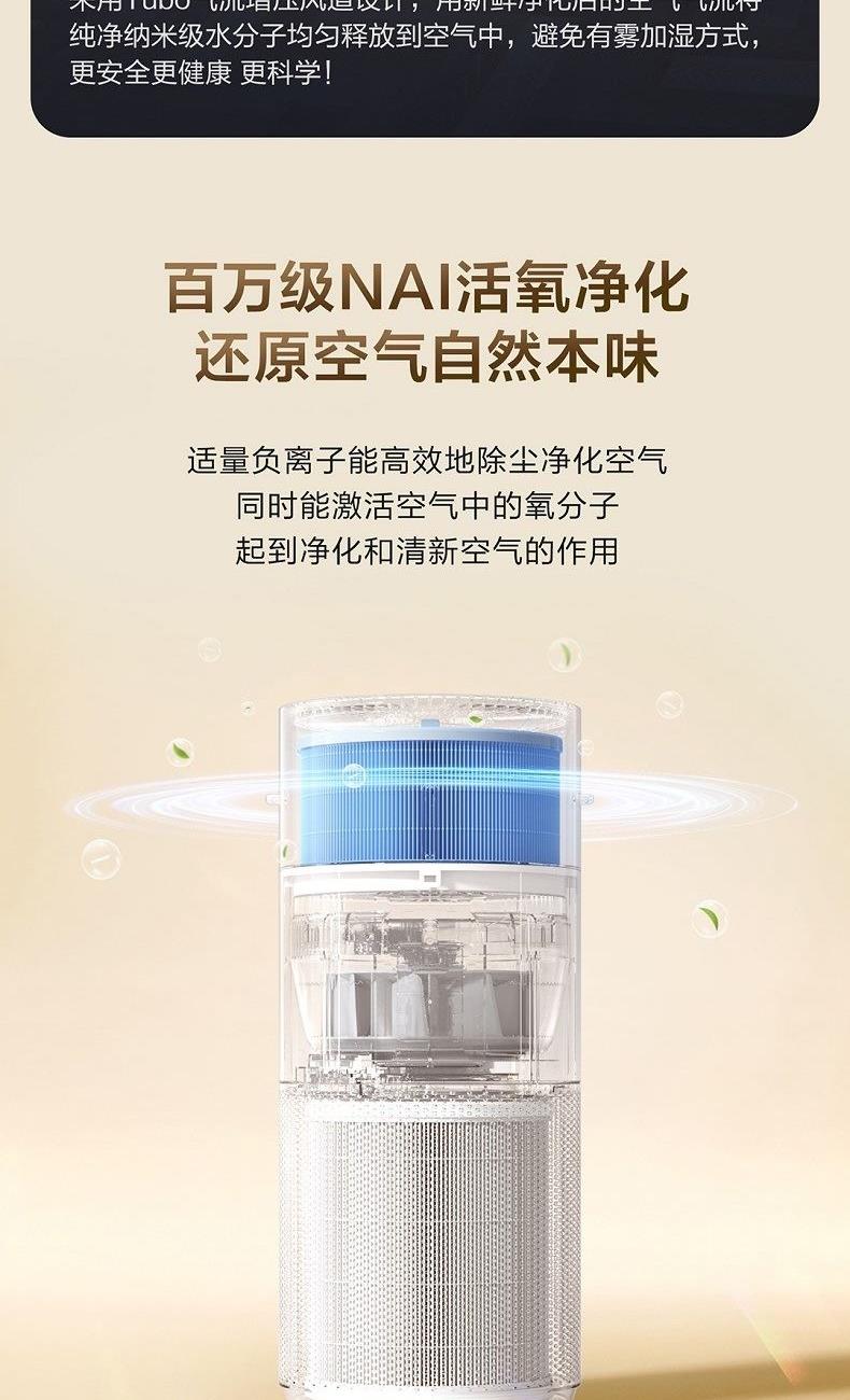 适用面积 42㎡ 净化方式 过滤式 颗粒物CCM P4 空气质量显示 PM2.5灯光显示 固态污染物CADR 340m³/h HEPA滤网等级 H13 气态CADR 170m³/h 气态污染物CCM F2 操控方式 触摸式;自动托管控制;APP操控 型号 KJ320F-JSQ3U1 额定电压 24V 额定功率 26W 1. 净润一体:净化+加湿一体,一机两用,四季皆宜,不闲置更实用