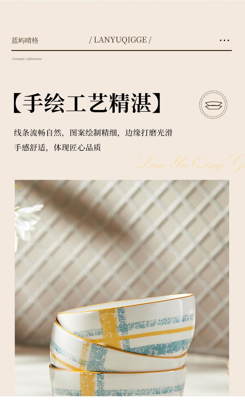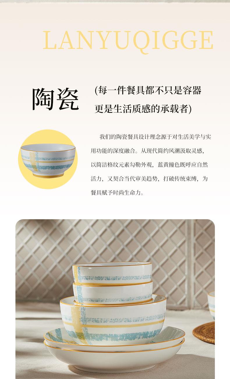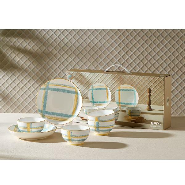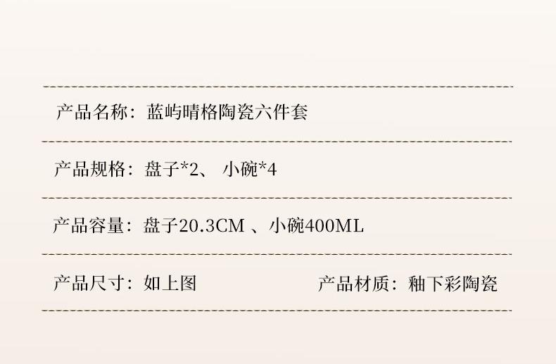 釉夏蓝屿晴格陶瓷餐具六件套Y-LY/L6