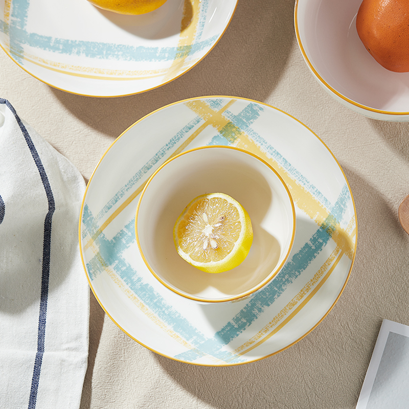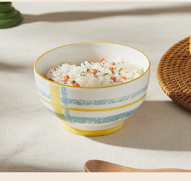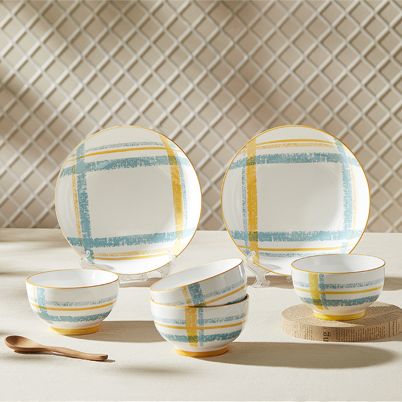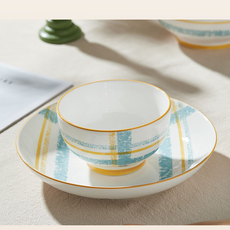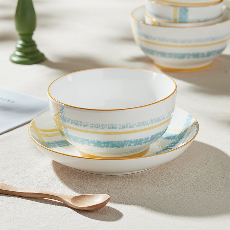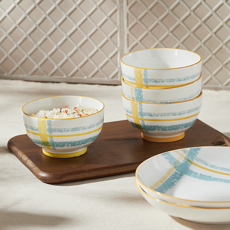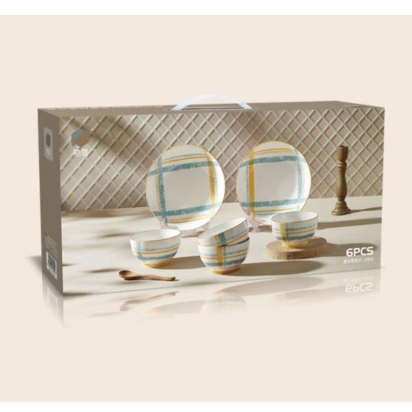 材 质:高温瓷 产品参数:4.5英寸小碗*4、8英寸盘子*2 彩盒尺寸:478*92*234mm 外箱尺寸:49*39*49cm 产品卖点:1.厚实瓷质,隔热防烫,外观色彩清新、光洁透亮、花面细腻。2.适用于洗碗机,消毒碗柜、微波炉、冰箱等。3.釉面光滑细腻,久用不褪色,釉下彩工艺,描边碗沿,田园复古风格,底部不上釉防滑设计,防滑更平稳。4.性价比高,适合福利集采银行保险项目。