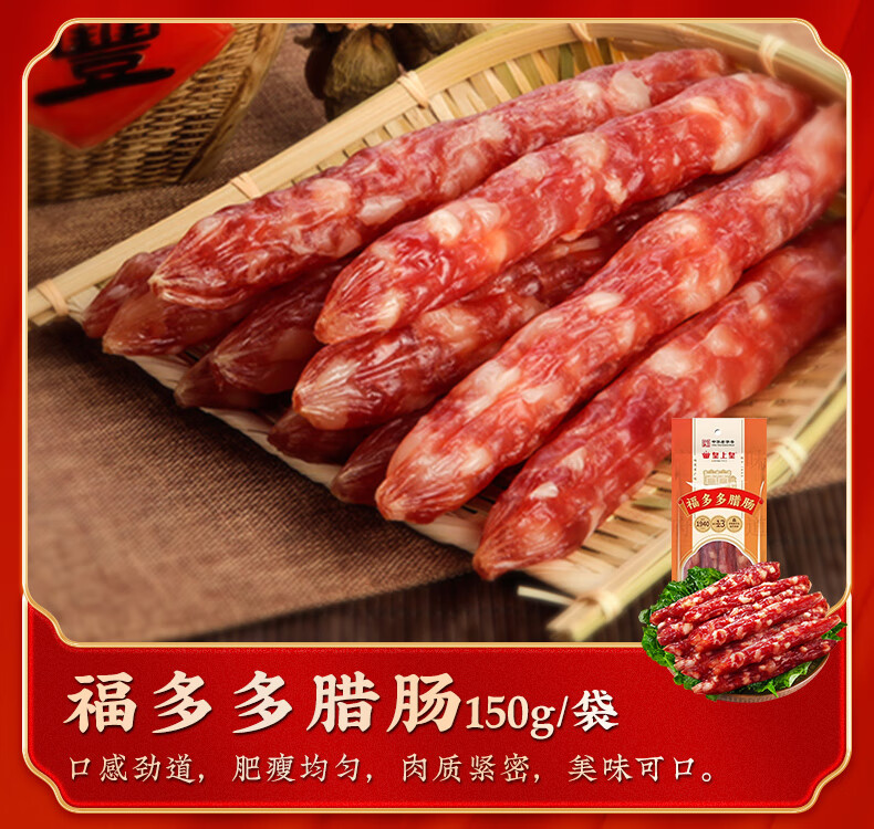 产地:广东 特产品类:广式腊肠 口味:原味 食用方法:烹饪食用 加工工艺:烘干 保质期:120天 内配:风干腊鸭700g*1 广味腊肠150g*1 福多多腊肠150g*2 福味腊肠200g*1 香荔腊肠250g*1 农家柴火腊肉200g*1 广式腊味礼盒*1