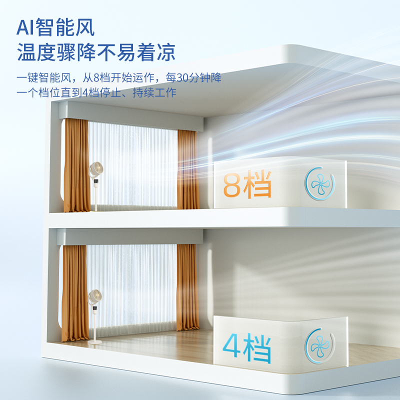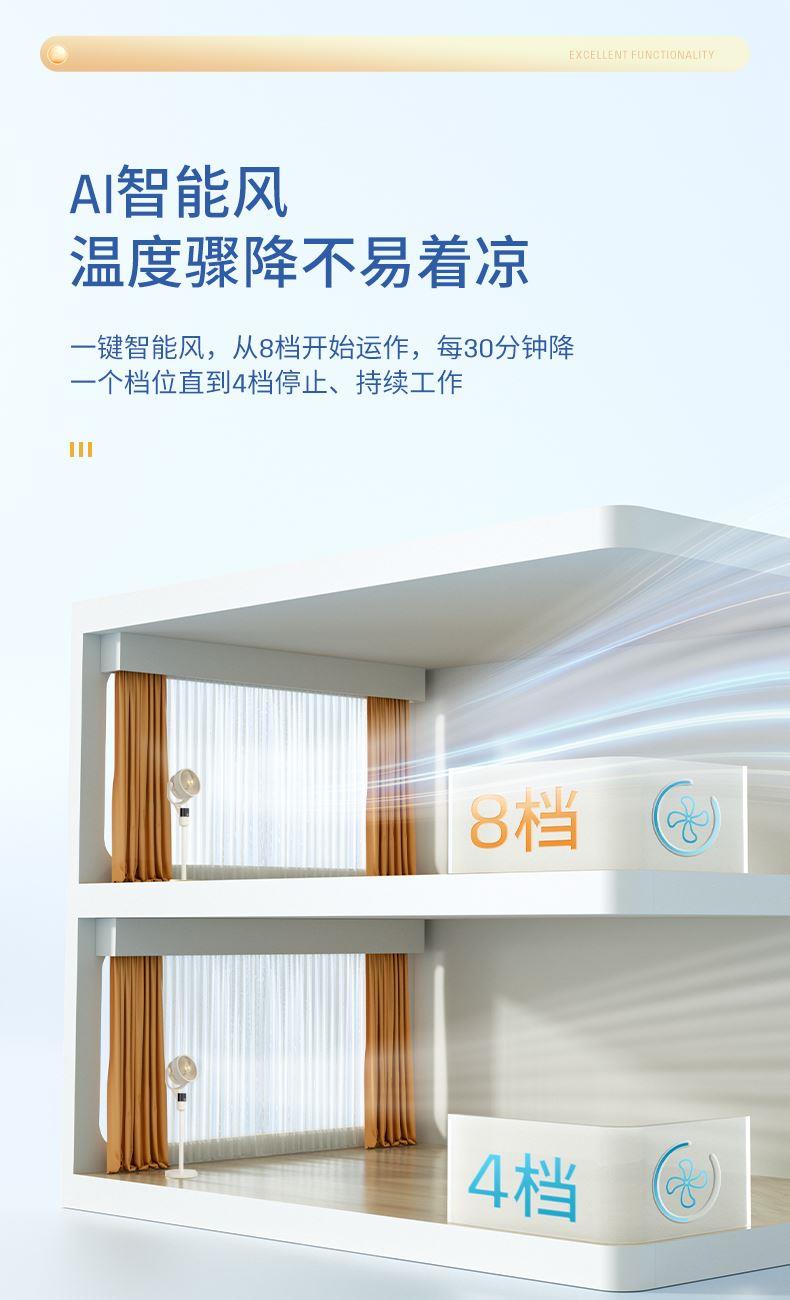 1、12档风速调节,12小时预约定时,AI智能变频;