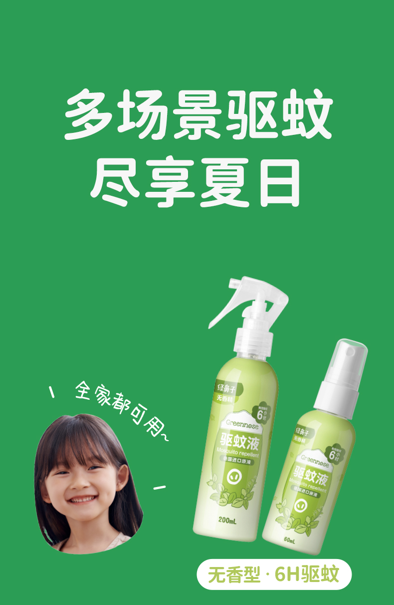绿鼻子驱蚊喷雾无酒精防蚊户外驱蚊花露水200ml