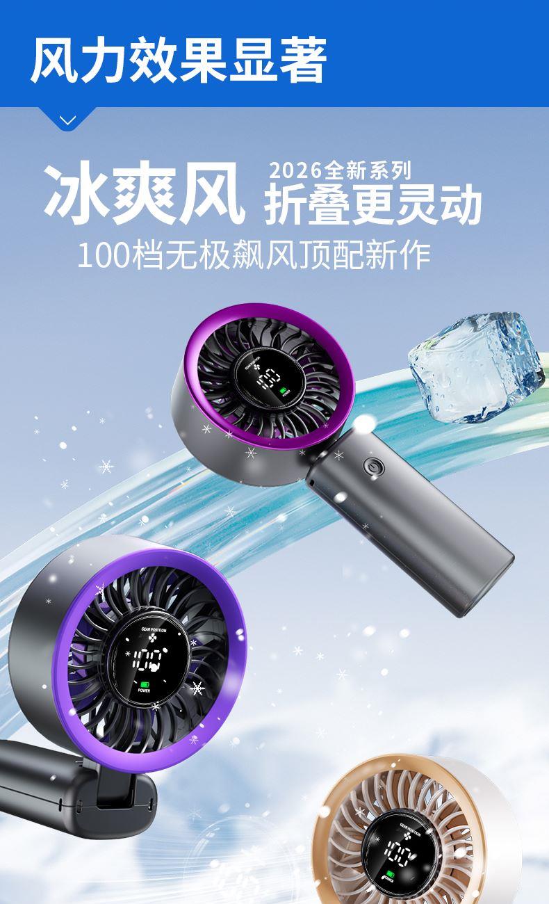 *涡轮扇叶音轻风大,3600毫安 *智能数显,100档涡轮强劲动力 *5000转快速降温,可折叠桌面 *支持小批量定制LOGO