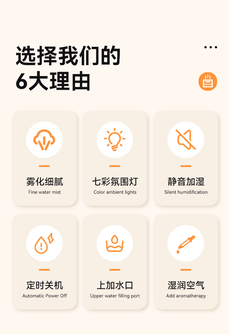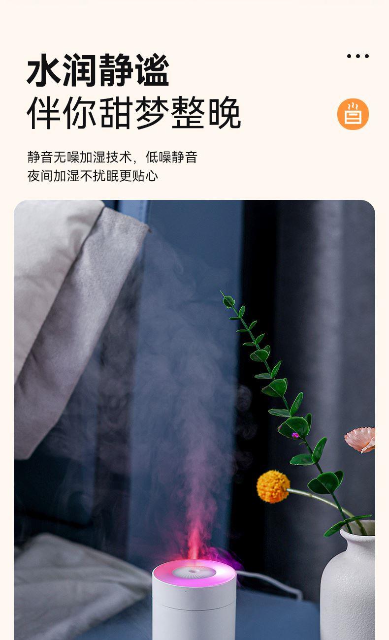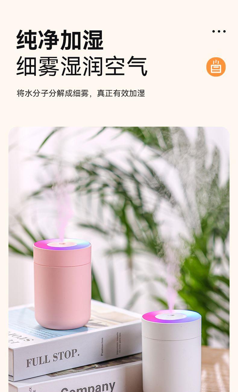 智能炫彩加湿器 型号:SZK-V20 材质:ABS+PP 额定功率:2W 输入电压:5V-1A 产品重量:85g 接口类型:USB,Type-c 产品颜色:白粉 产品尺寸: 70*70*102mm 水箱容量:230mL