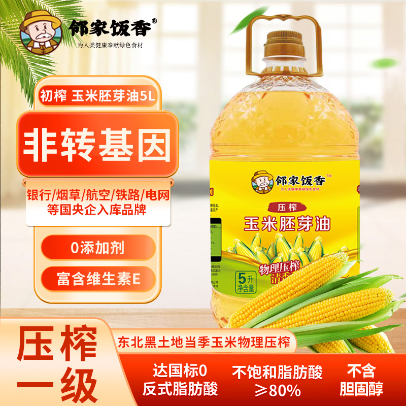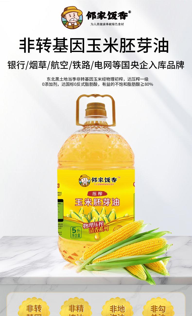 邻家饭香非转基因物理压榨一级玉米油5L/桶LJFX135-Y
