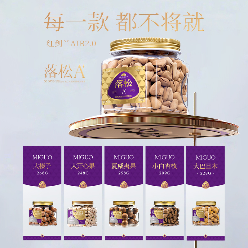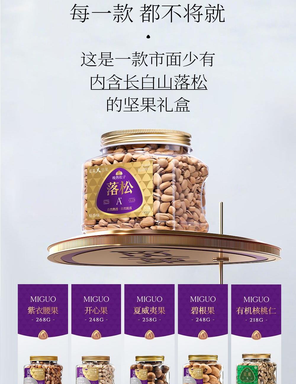 开心果248g A180大紫衣腰果268g 落松A+259g 夏威夷果258g 大碧根果248g 有机核桃仁218g