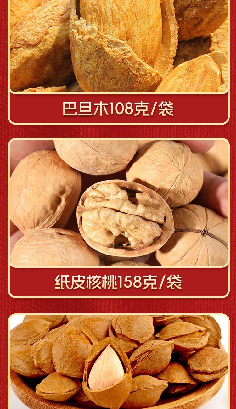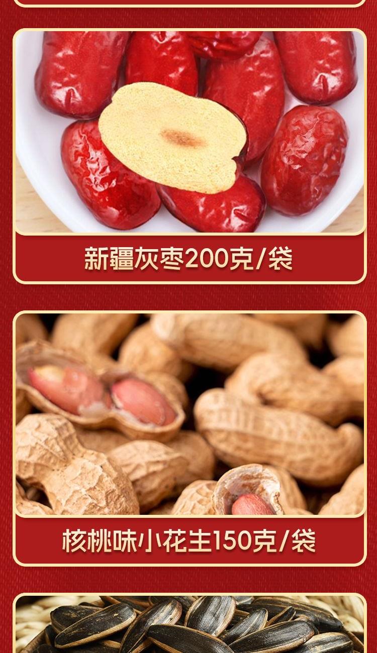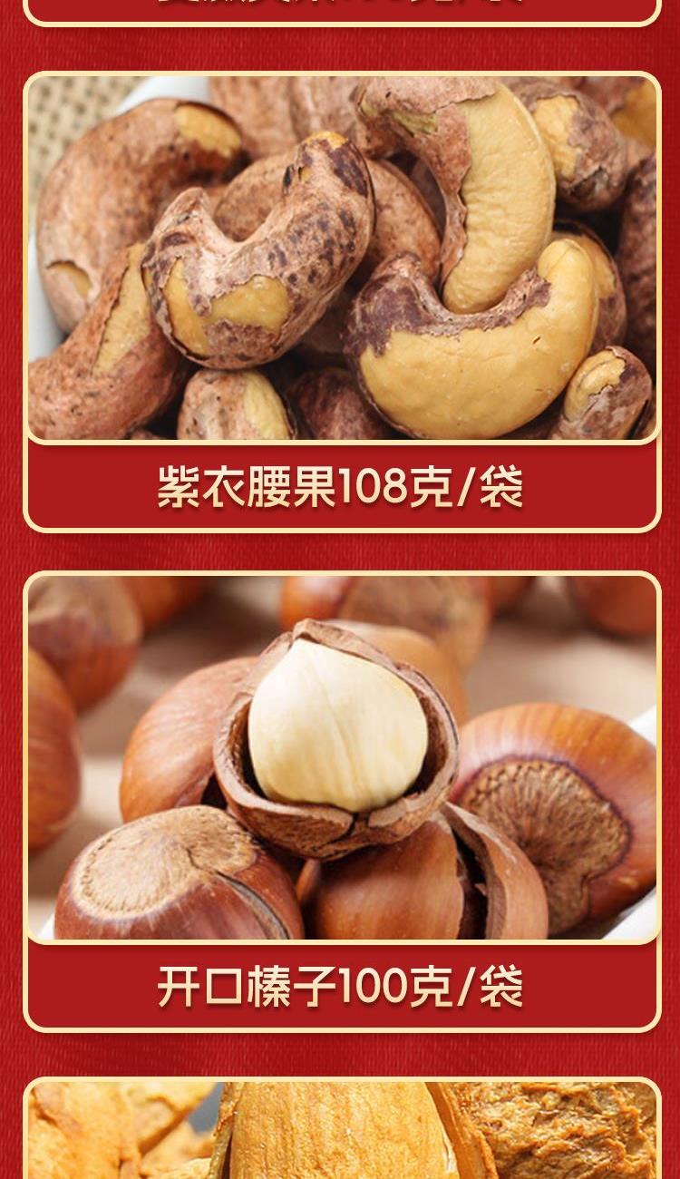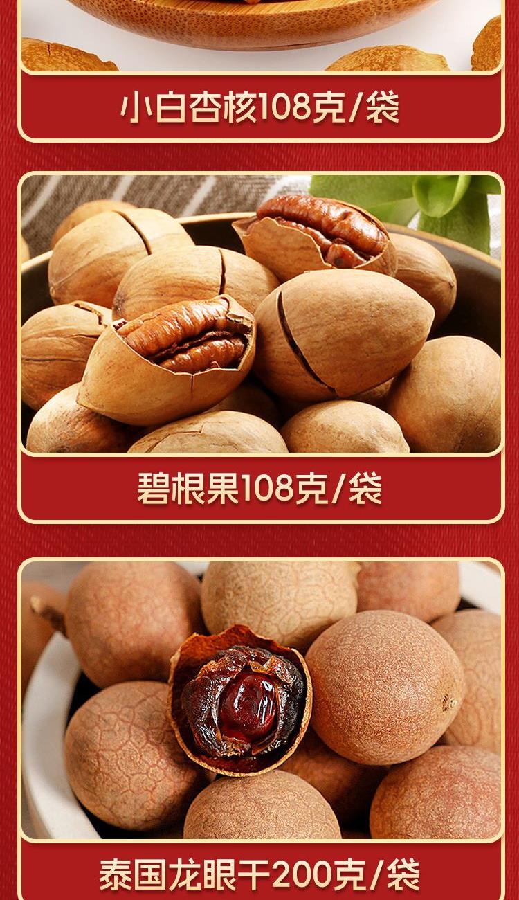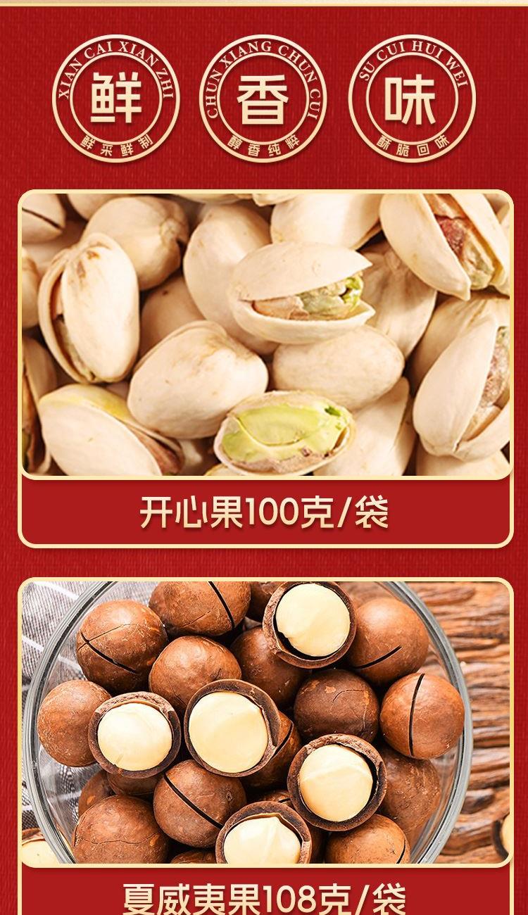 开心果100g 夏威夷果108g 紫衣腰果108g 开口榛子100g 巴旦木108g 纸皮核桃158g 小白杏核108g 碧根果108g 泰国龙眼干200g 新疆灰枣200g 核桃味小花生150g 五香瓜子128g