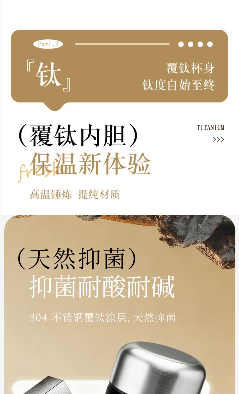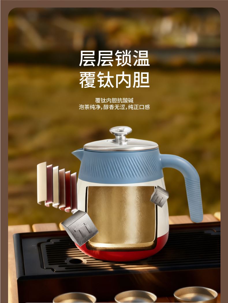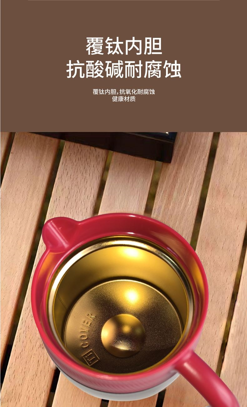 700ml覆钛泡茶壶*1+300ml覆钛保温杯*1 产品容量:700ml 产品材质:覆钛涂层+304不锈钢茶漏 材质:304不锈钢 壶身工艺:三道烤漆 产品容量:300ml 覆钛保温杯产品尺寸:160x65mm 产品材质:覆钛涂层+304不锈钢 杯身工艺:三道烤漆