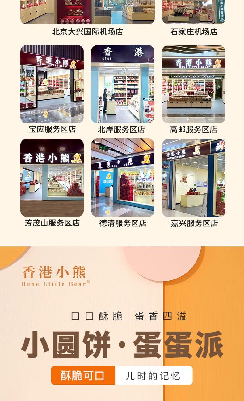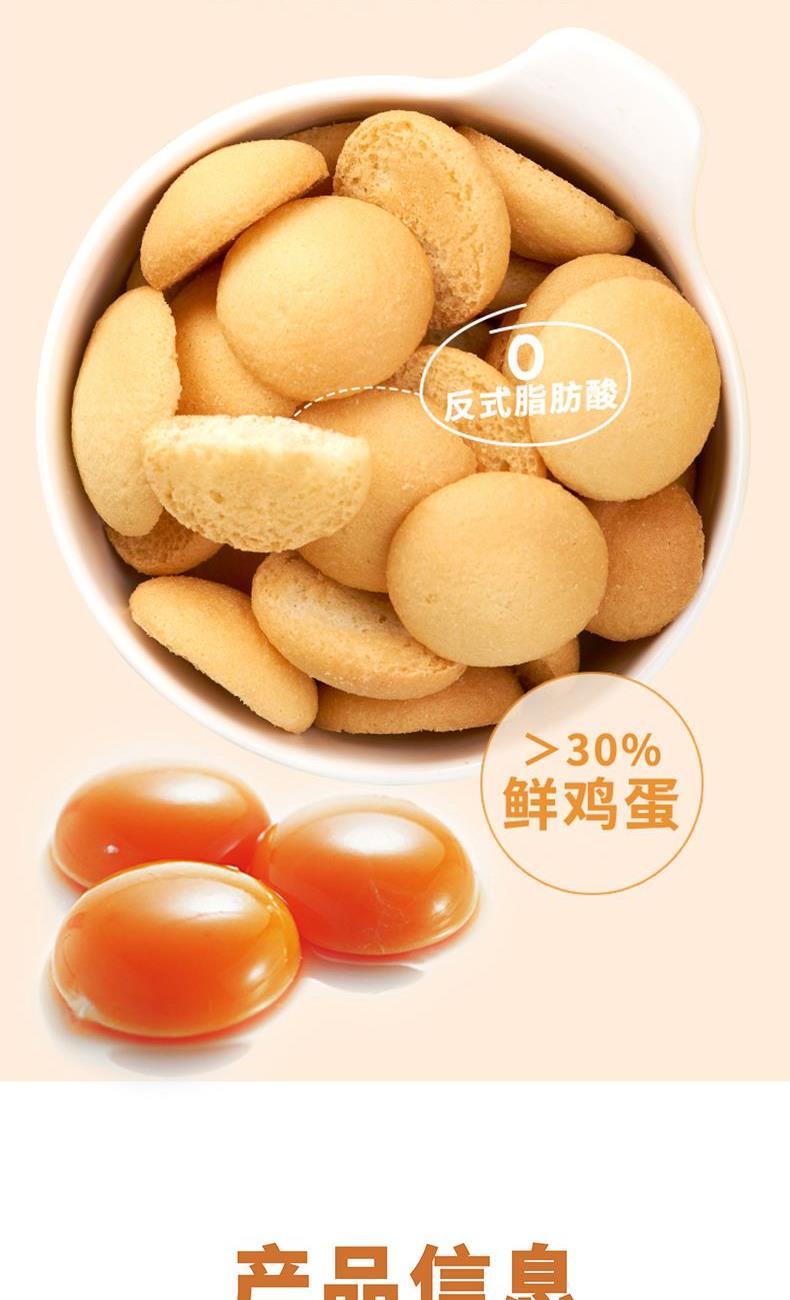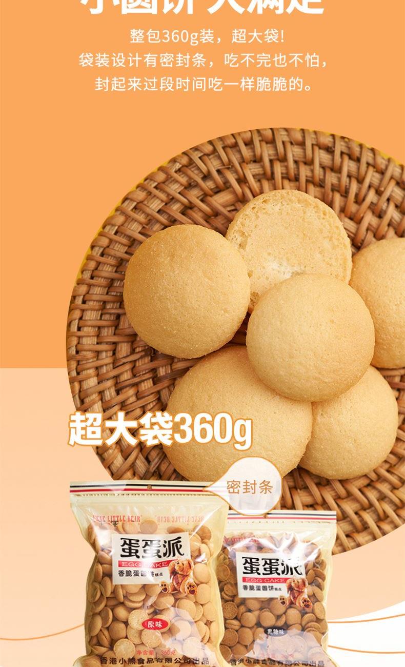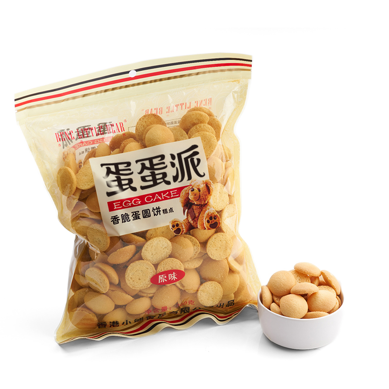 产品净含量:360g 产品保质期:12个月 产品包装:精致透明袋包装 产品卖点:配料干净,儿时的味道,鲜美鸡蛋,采用》30%以上优质鸡蛋,精选白糖,孕妇儿童可吃。香港小熊在全国专柜和专卖店有500多家,品质保证,售后安心,有保障。