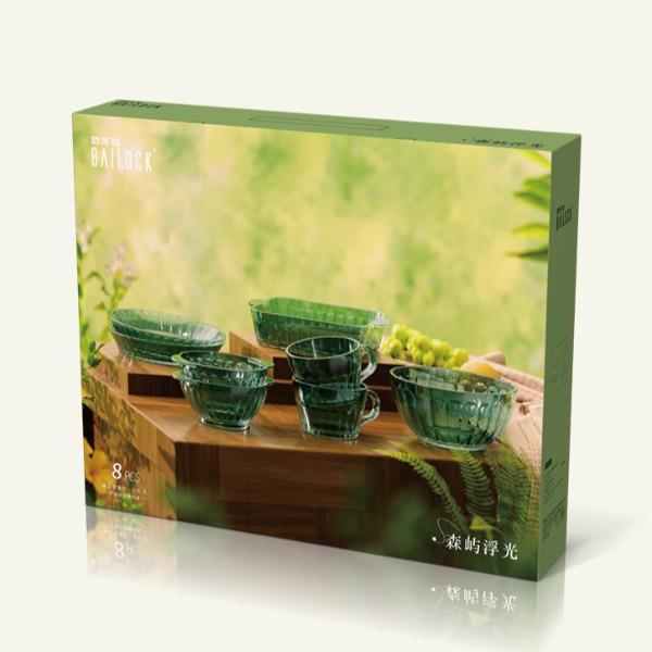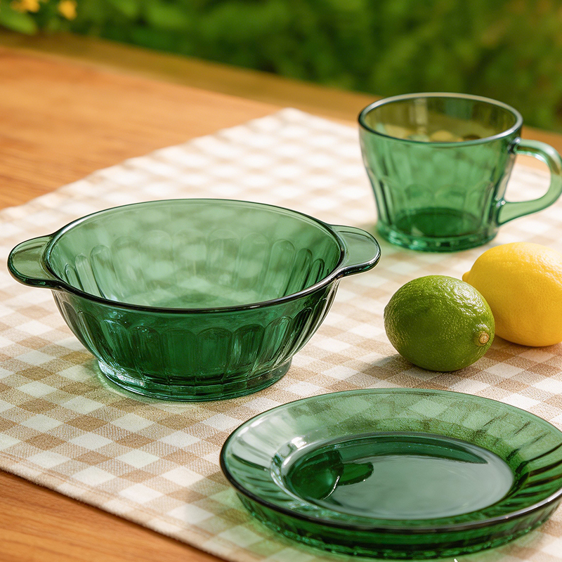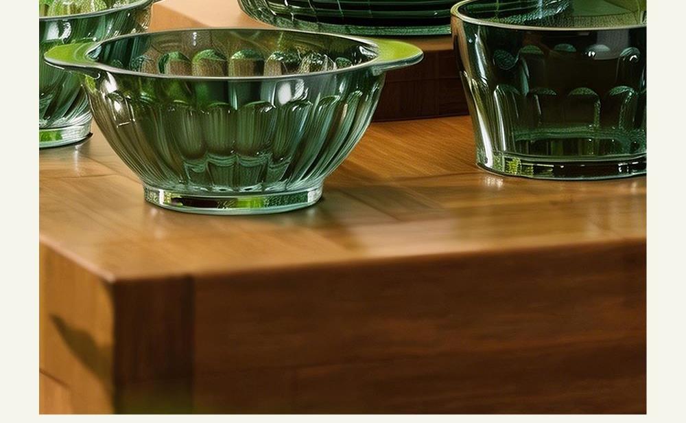 材 质:高硼色料玻璃 产品参数:小碗*2、杯子*2、盘子*2、大碗*1、烤盘*1 产品卖点:1.它是原色玻璃:不是表面涂层,杜绝铅镉等重金属析出。 2.它是高硼硅材质:能从冰箱直接进烤箱,不炸裂,不娇气。 3.它是顶配厚度:竖纹肌理,重工加厚,手感无与伦比。 只服务懂行、追求极 致生活品质的客户。礼盒发售中,详情私信。
