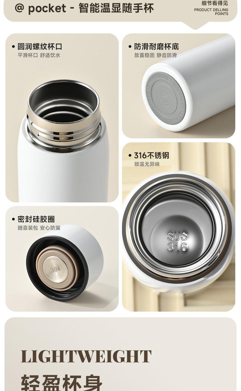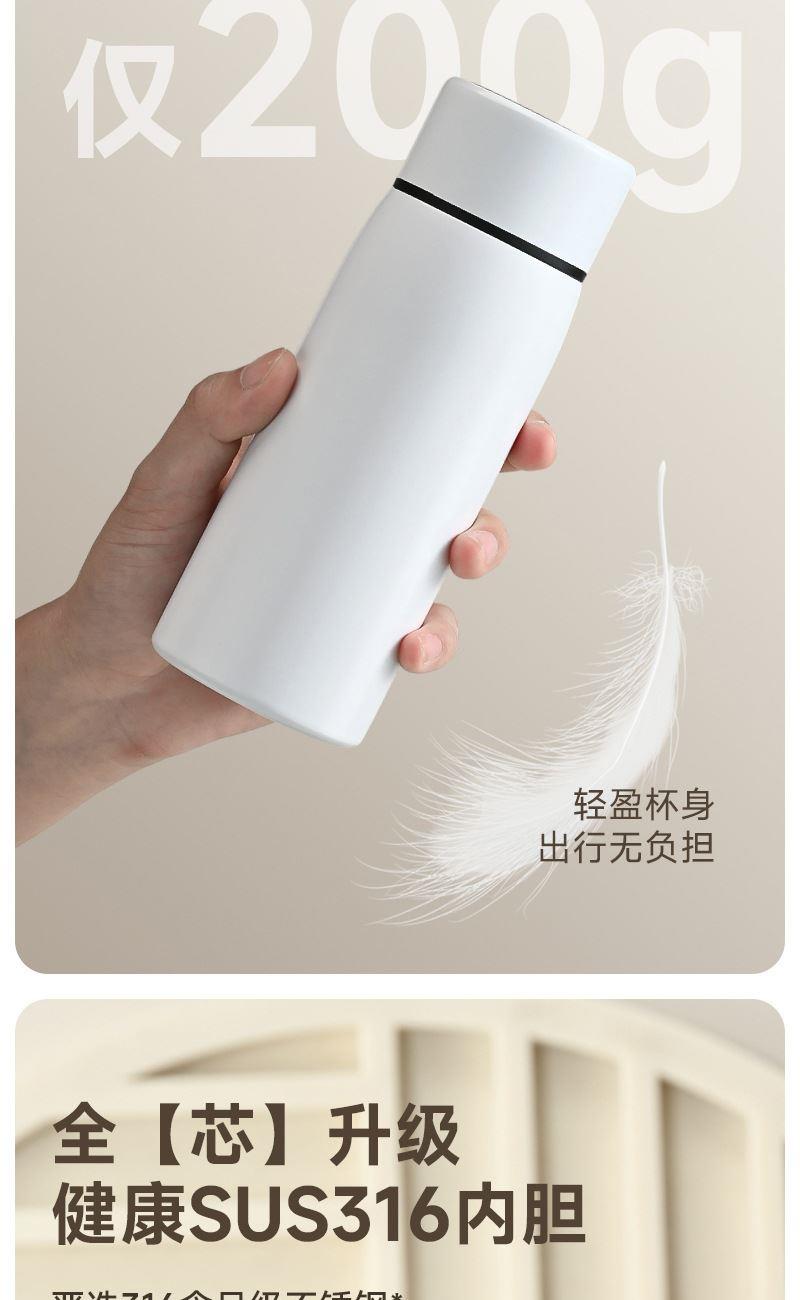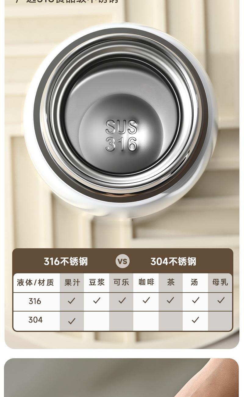 容量:260ml 材质:316不锈钢 颜色:黑,蓝,绿,米色 包装:彩盒 品质:精品杯 •选用优质316不锈钢,高温考漆工艺,无尾真空技术处理。 •杯口圆润光滑,精工细作,食品级PP塑料盖安全无异味。 •哑光漆面简约又不失经典,雾面质感思腻尔温润。 •未成年人请在大人指导下或告知后使用。