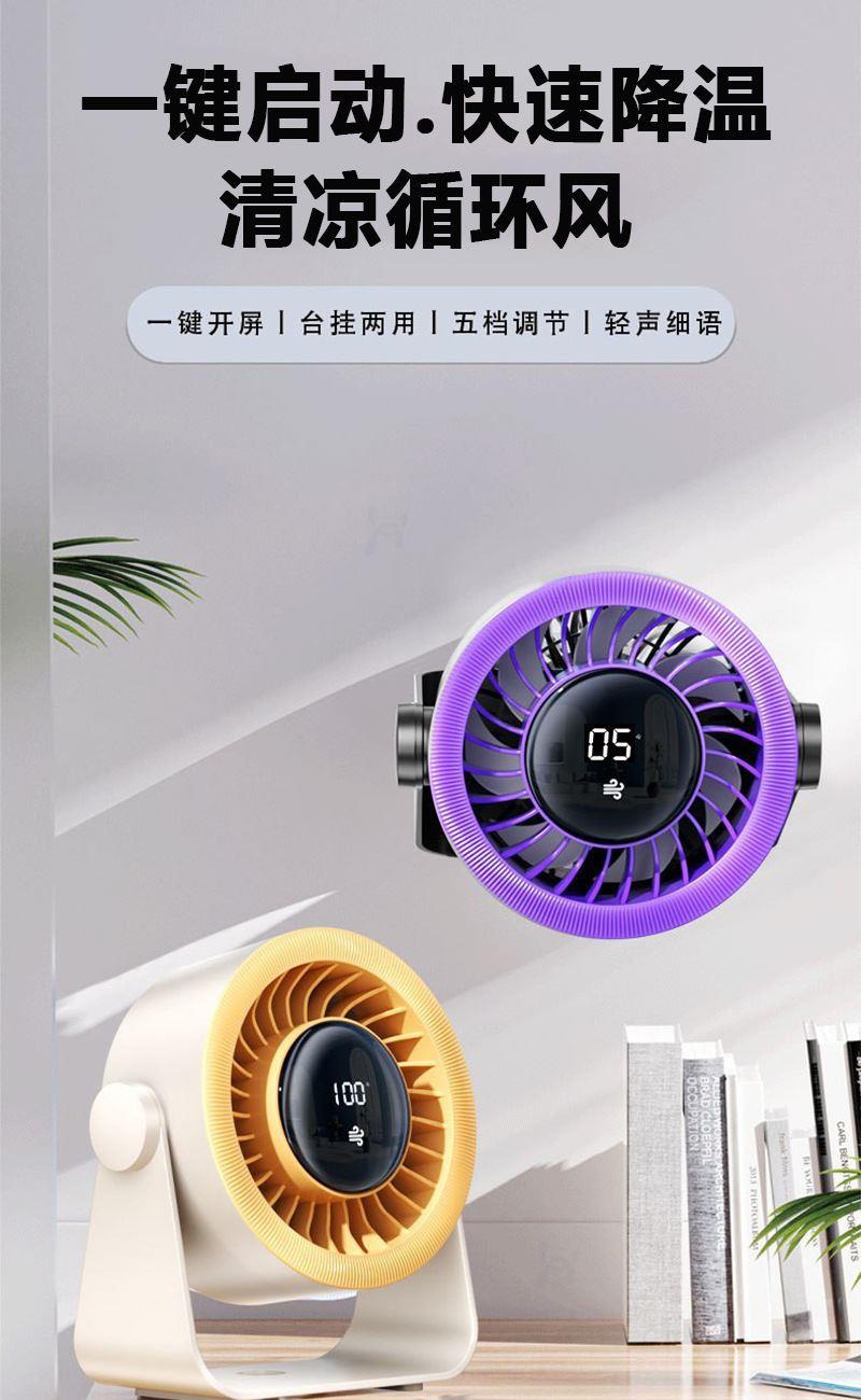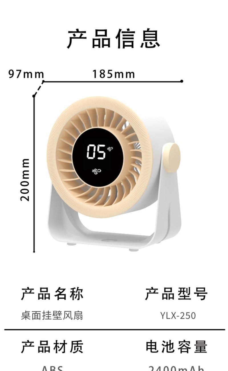 遥里逊数显涡轮挂壁小台扇桌面台式USB电风扇YLX-250