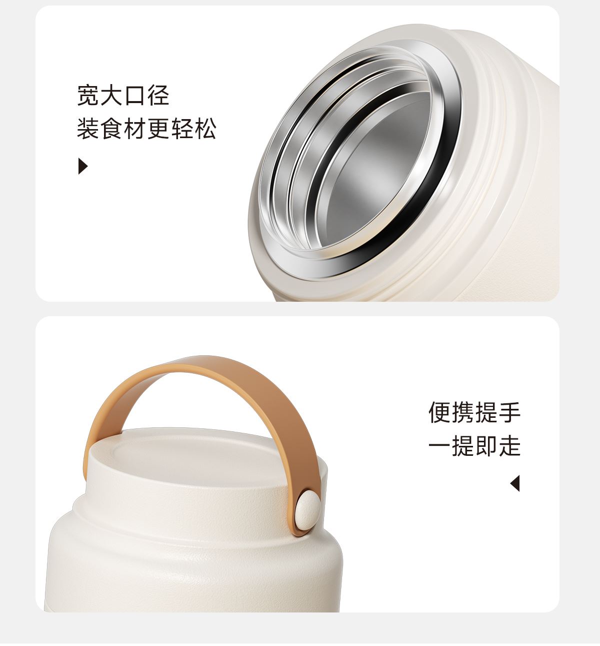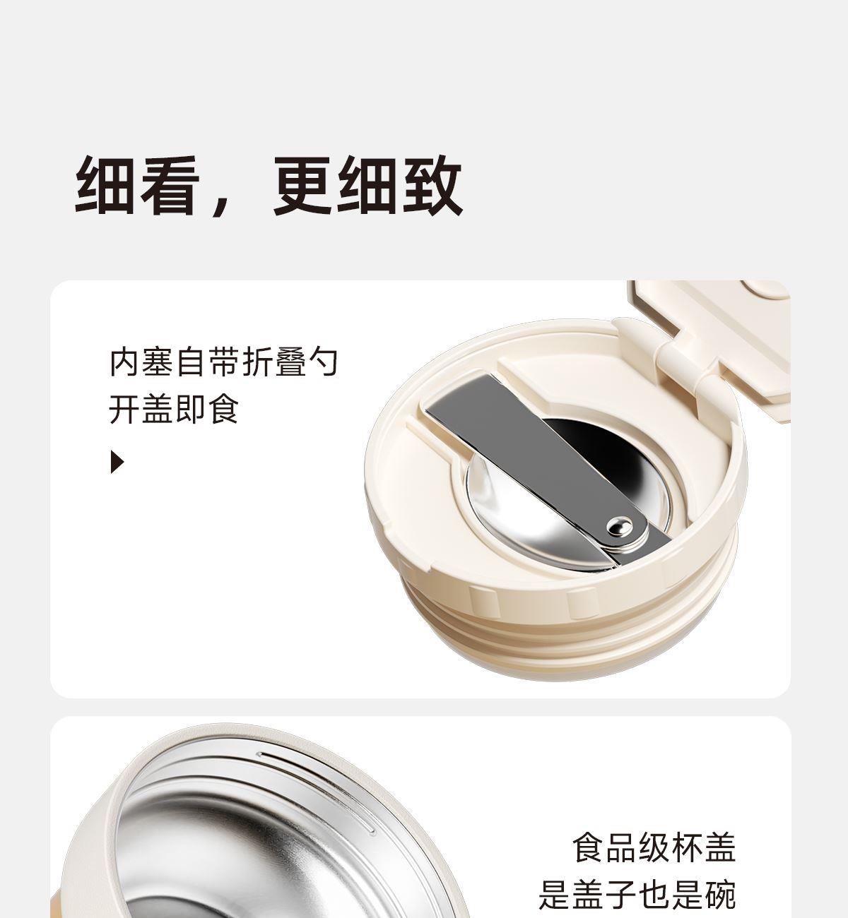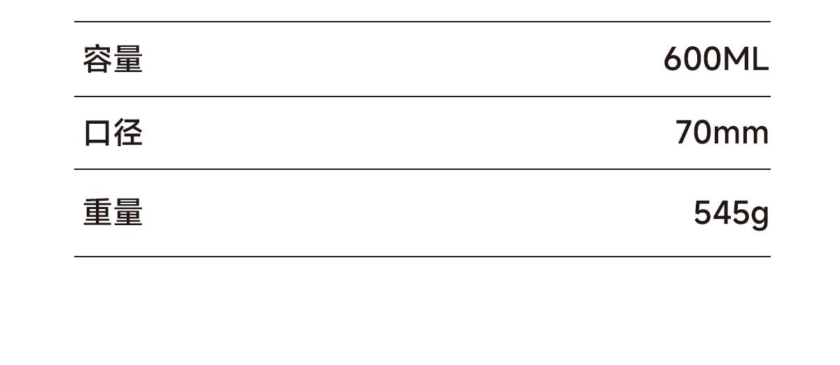 容量:600ml | 净重:545g | 口径:70mm 材质:316L不锈钢(内胆)304不锈钢(外壳) PP(杯盖) 产品尺寸:110mm*110mm*155mm 彩盒尺寸:115mm*115mm*160mm 执行标准:GB/T 29606-2013《不锈钢真空杯》 316不锈钢内胆,材质安全放心,耐腐蚀不易生锈,真空隔热,持久锁温。内塞自带折叠勺,开盖即食。杯盖也是碗,便携提手,一提即走。
