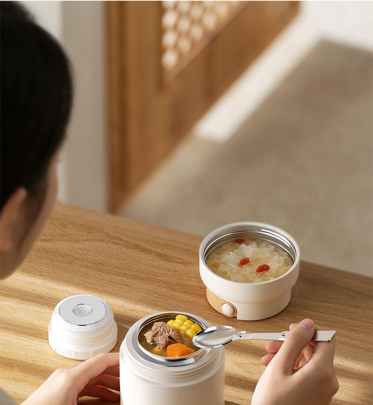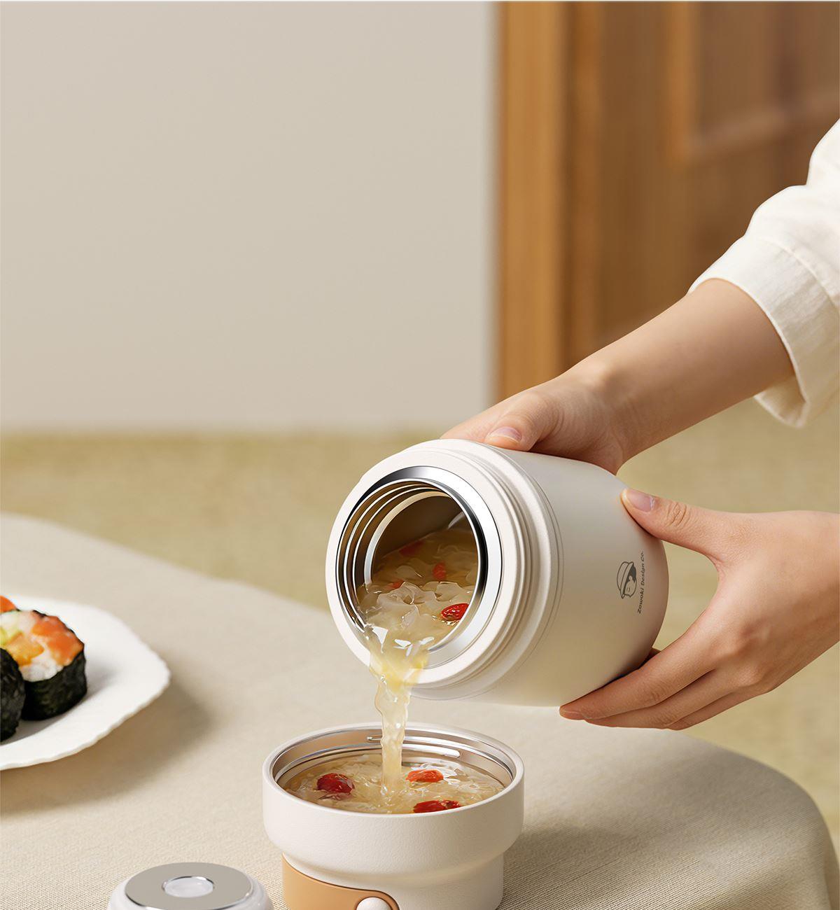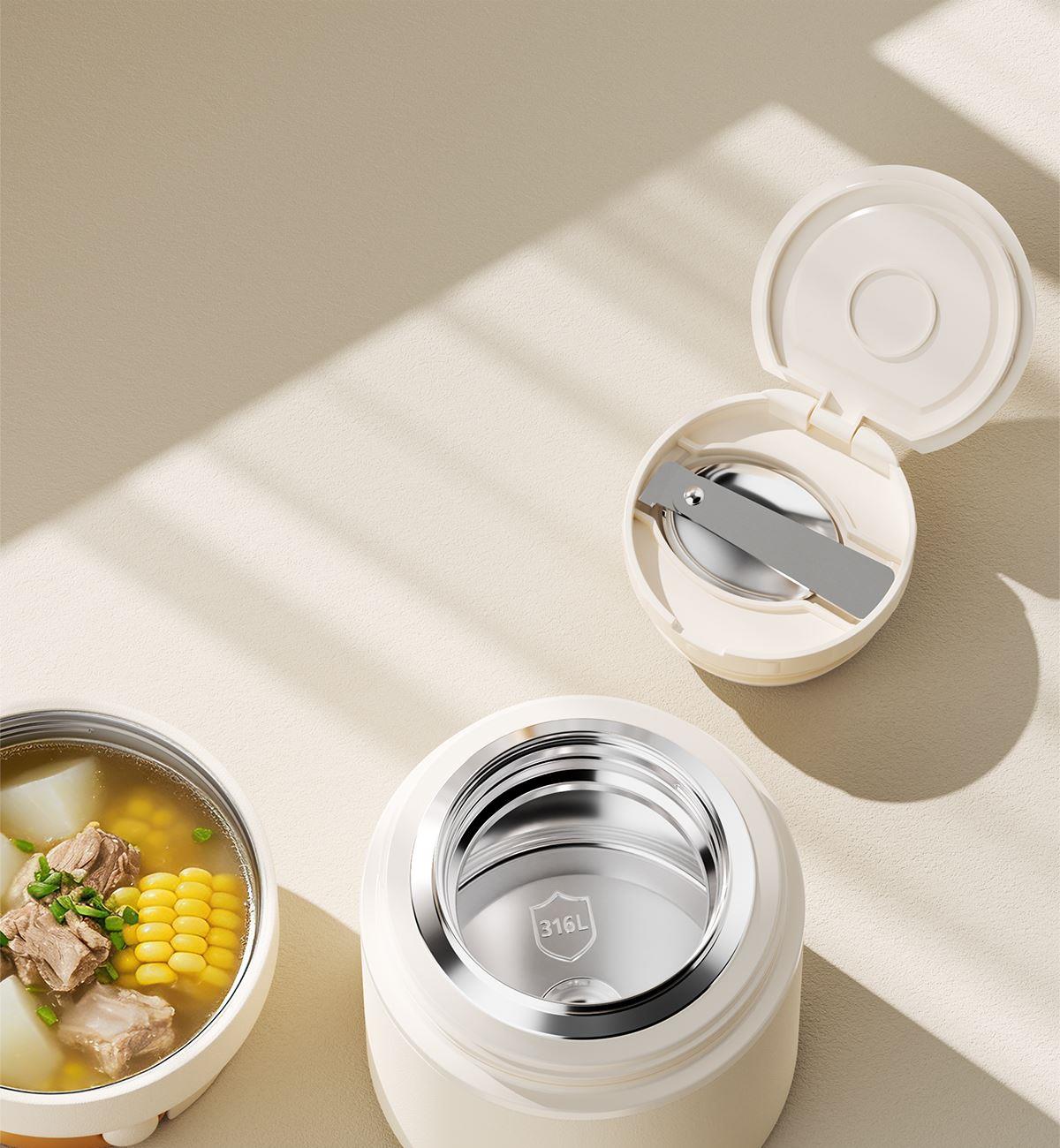 容量:600ml | 净重:545g | 口径:70mm 材质:316L不锈钢(内胆)304不锈钢(外壳) PP(杯盖) 产品尺寸:110mm*110mm*155mm 彩盒尺寸:115mm*115mm*160mm 执行标准:GB/T 29606-2013《不锈钢真空杯》 316不锈钢内胆,材质安全放心,耐腐蚀不易生锈,真空隔热,持久锁温。内塞自带折叠勺,开盖即食。杯盖也是碗,便携提手,一提即走。