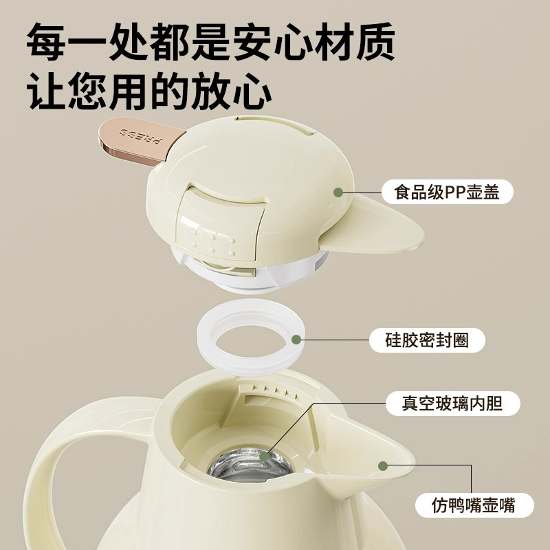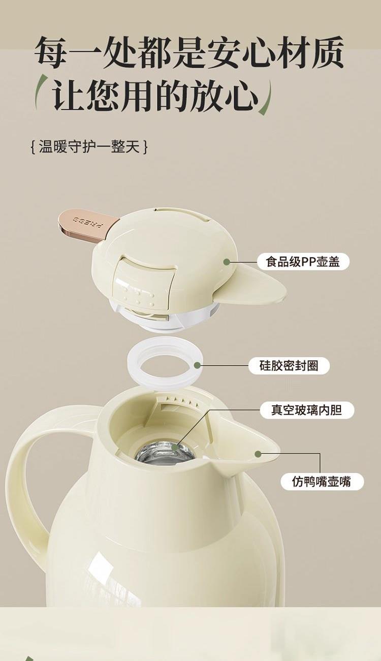 牛皮纸邮购盒包装,建议慎拍 容量:2000ml 材质:PP外壳+玻璃内胆+硅胶圈 颜色:奶油白、牛油果绿、大象灰 产品特点: 1、食品级PP防护外壳 2、食品级高硼硅玻璃内胆 3、保温镀银层 4、高真空隔热层
