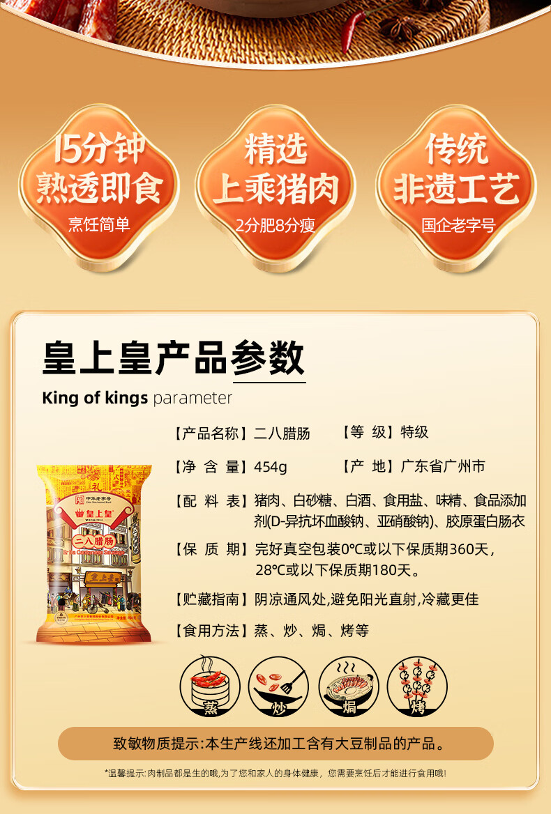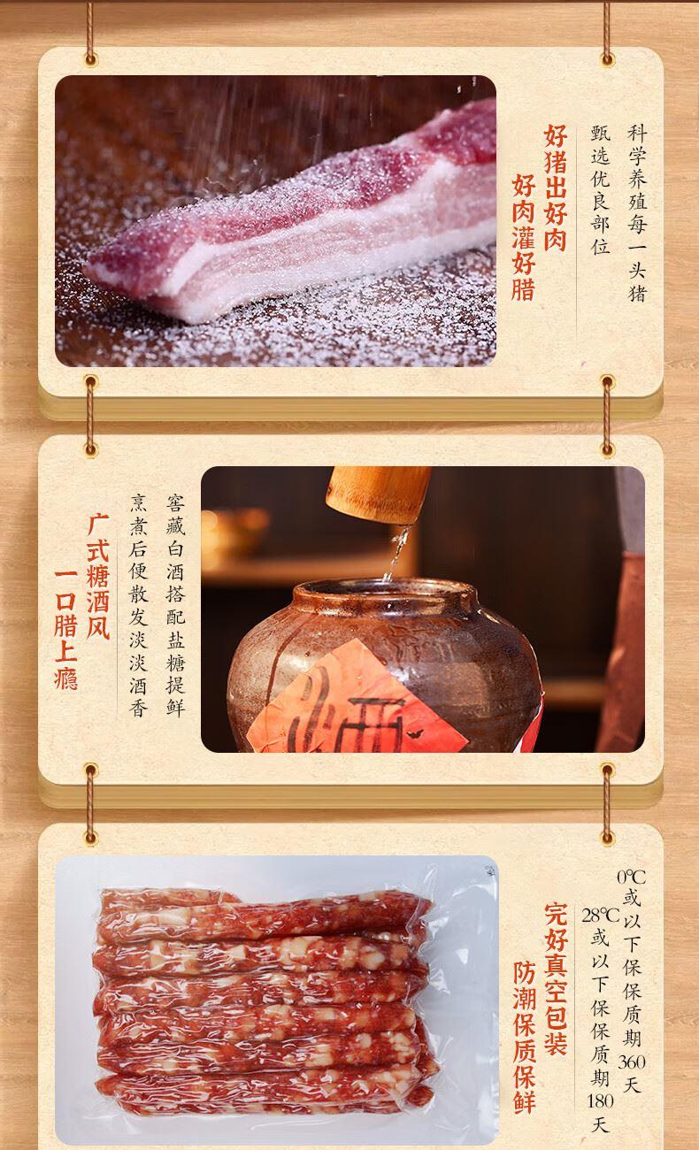 产地:广东 特产品类:广式腊肠 包装形式:袋装 食用方法:烹饪食用 加工工艺:烘干
