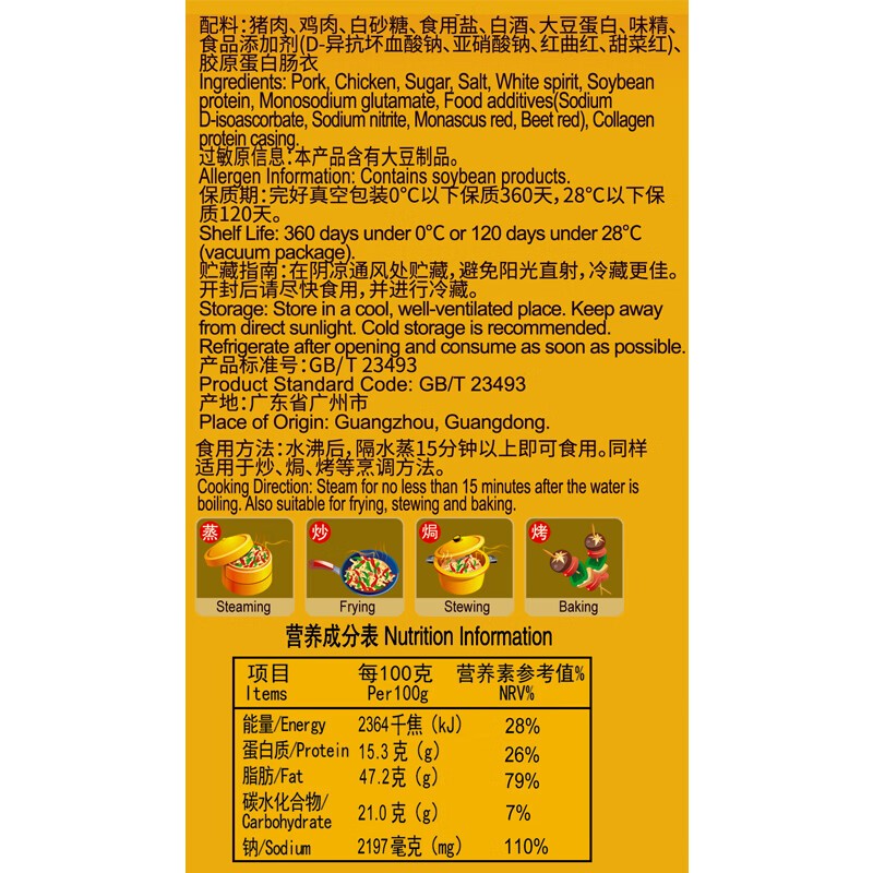 产地:广东 特产品类:广式腊肠 包装形式:袋装 食用方法:烹饪食用 加工工艺:烘干 保质期:360天