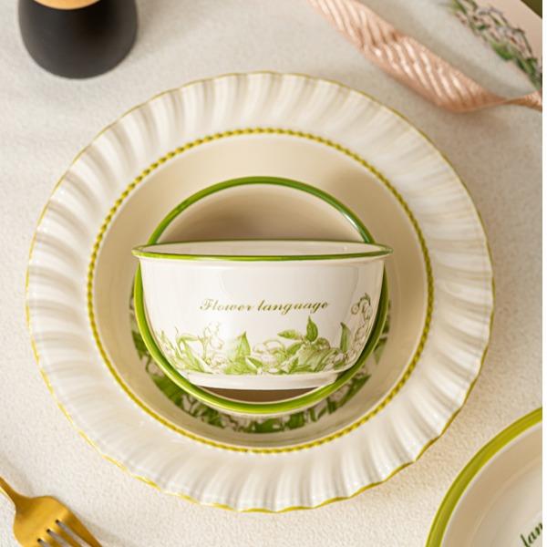 铃兰美学设计:手绘铃兰纹样,清新淡雅,为餐桌注入自然诗意,适配田园、复古等多种家居风格。