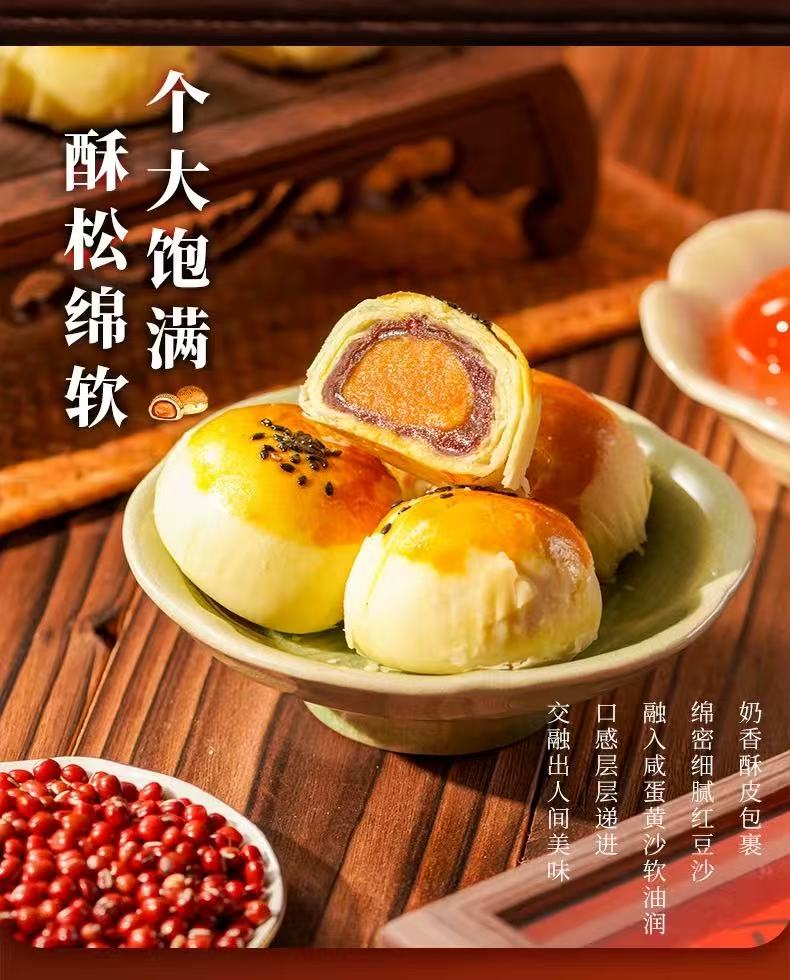 1*12*450g 包装:290*270*70mm 外箱:540*440*310mm 存放于通风干燥处 , 保质期90天 u 添加进口新西兰安佳黄油; u Q弹雪媚娘搭配红豆沙馅,咸香鲜甜口感四重奏; u 不添加防腐剂,精简配料,好吃无负担。