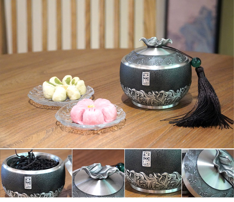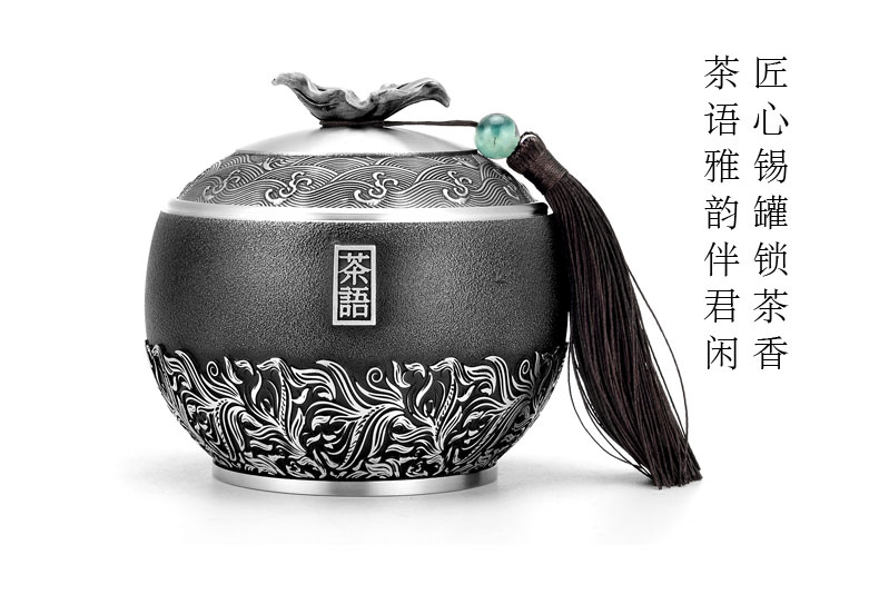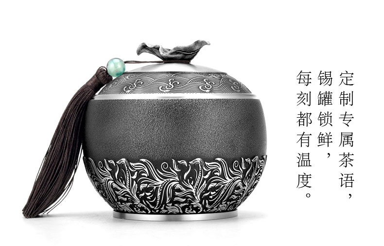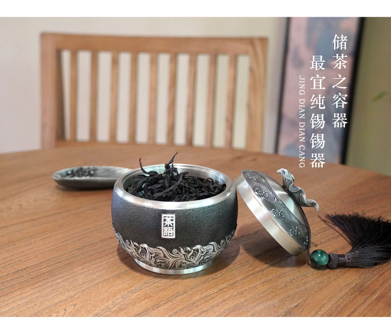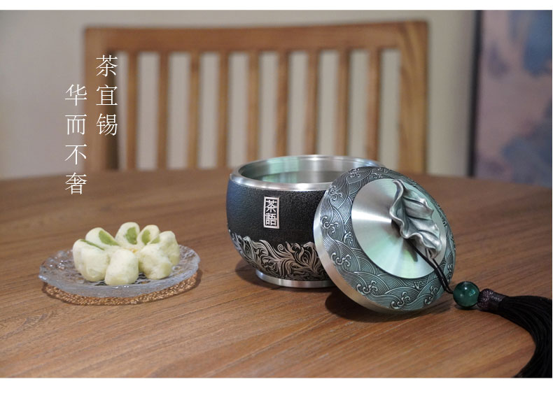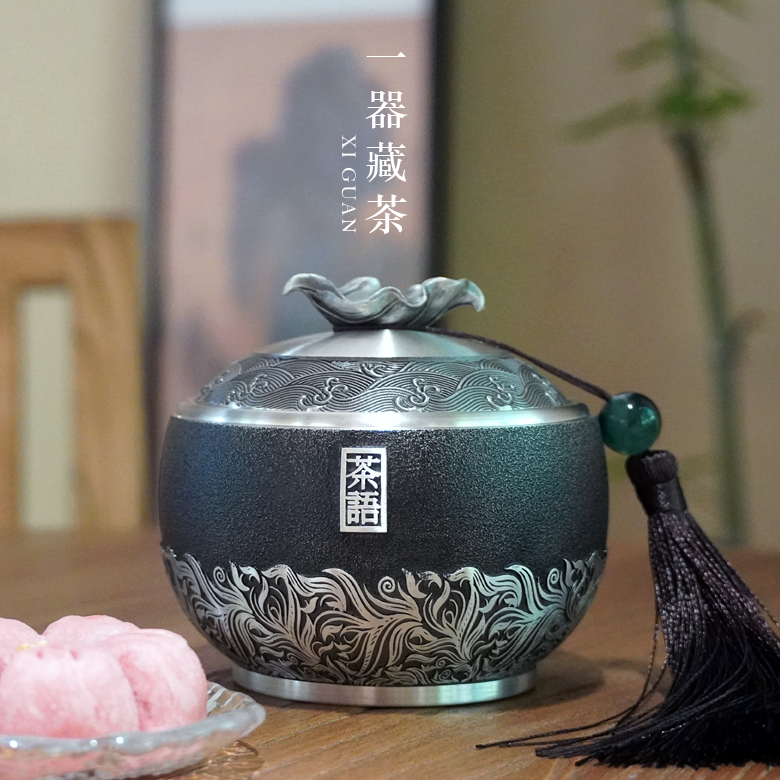 • 锡品源茶语锡罐防潮密封保鲜中式茶室手工纯锡茶叶罐可定制储茶罐