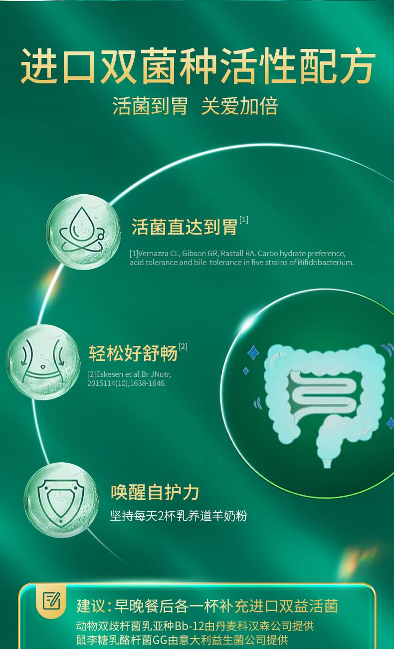 属于肠胃健康定制型羊奶粉 1、每罐含100亿+活性益生菌,保持活性到肠胃,让肠胃活力满满 2、独特的绵羊奶小分子,脂肪球比山羊奶和牛奶更小更容易吸收 3、绵羊奶的口感柔顺,没有羊膻味,香浓美味,适合男女老少