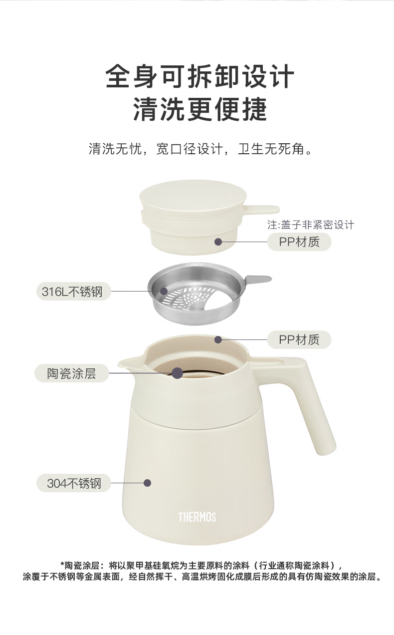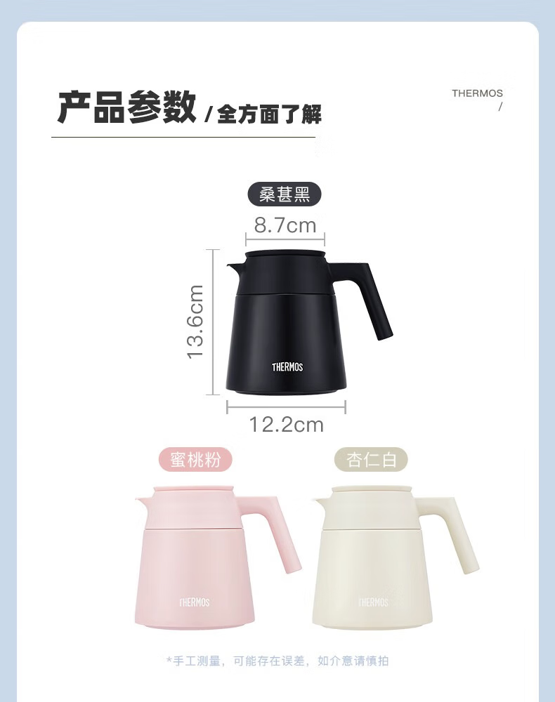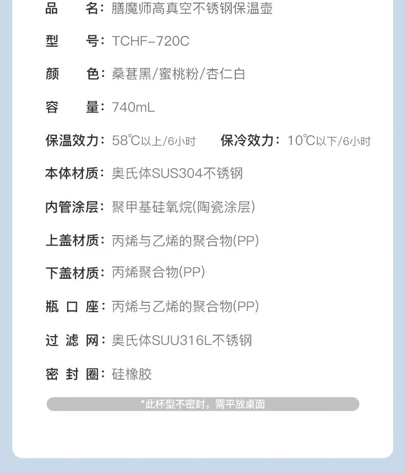颜 色:DB桑萇黑/PK蜜桃粉/LBG杏仁白 容 量:740ML 类 型:泡茶壶 定 制:可以定制 材 质:茶滤316 内胆陶瓷图层 保 温:6小时约60°C 保 冷:6小时约11°C以下