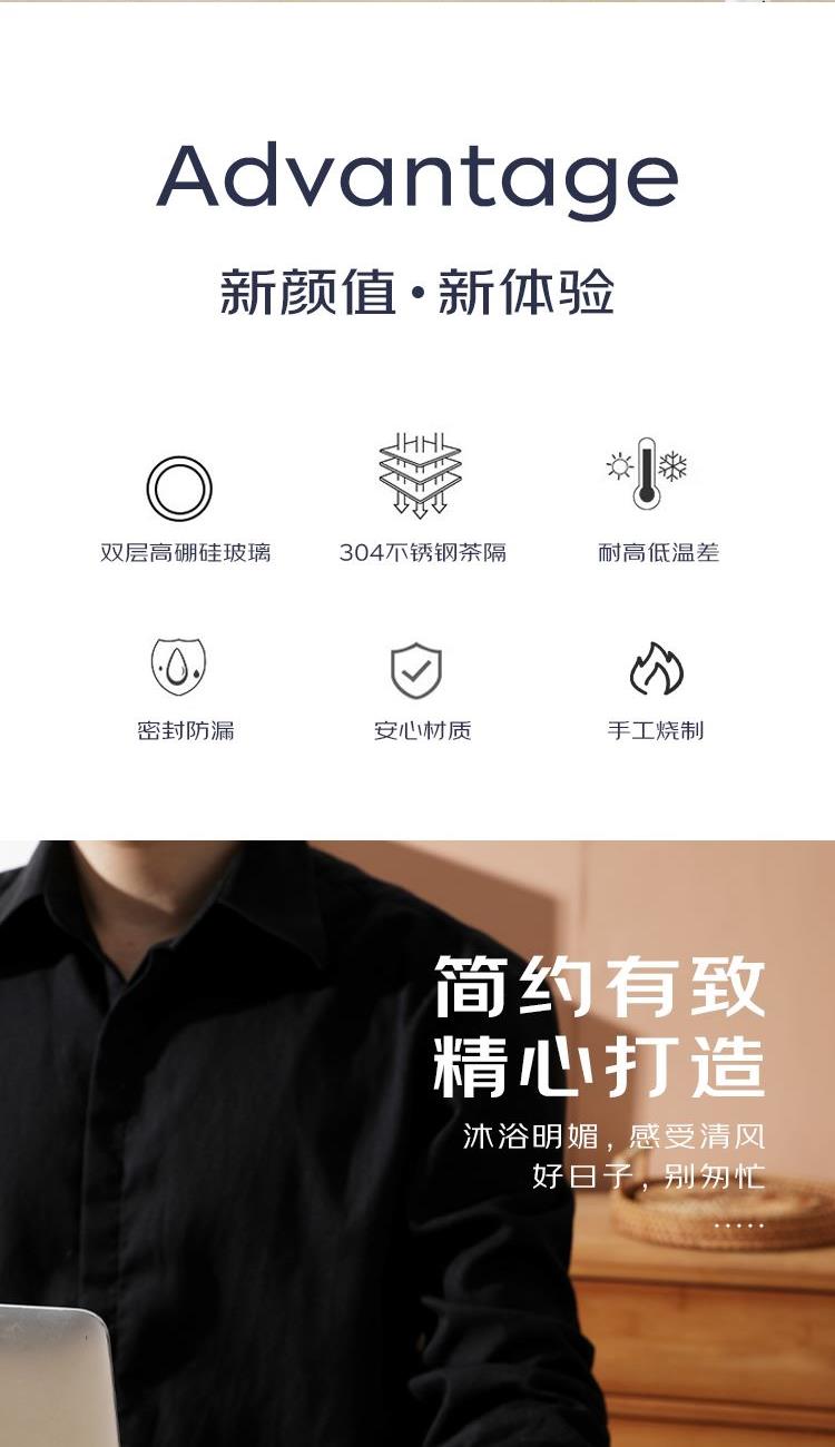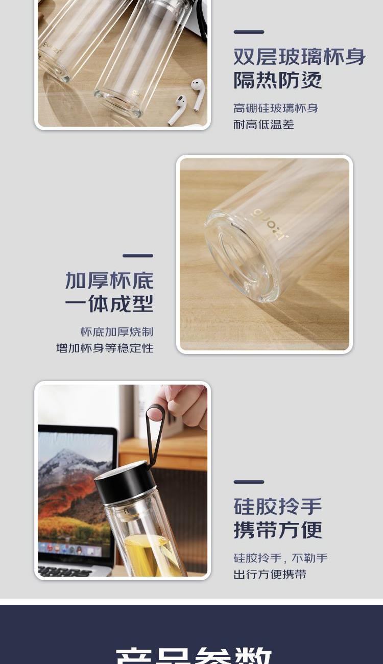 容 量:300ml 材 质:高硼硅玻璃+304不锈钢茶隔+PP盖 尺 寸:D65×195mm