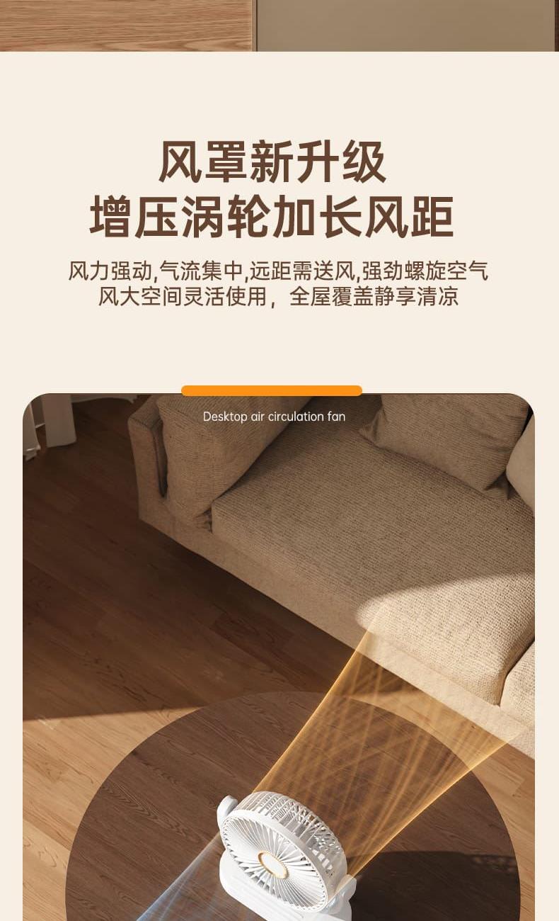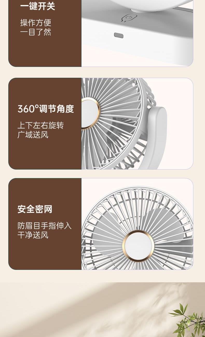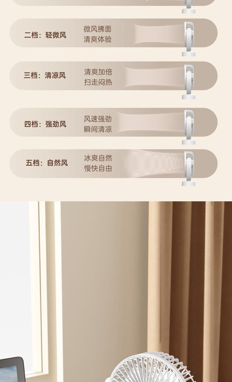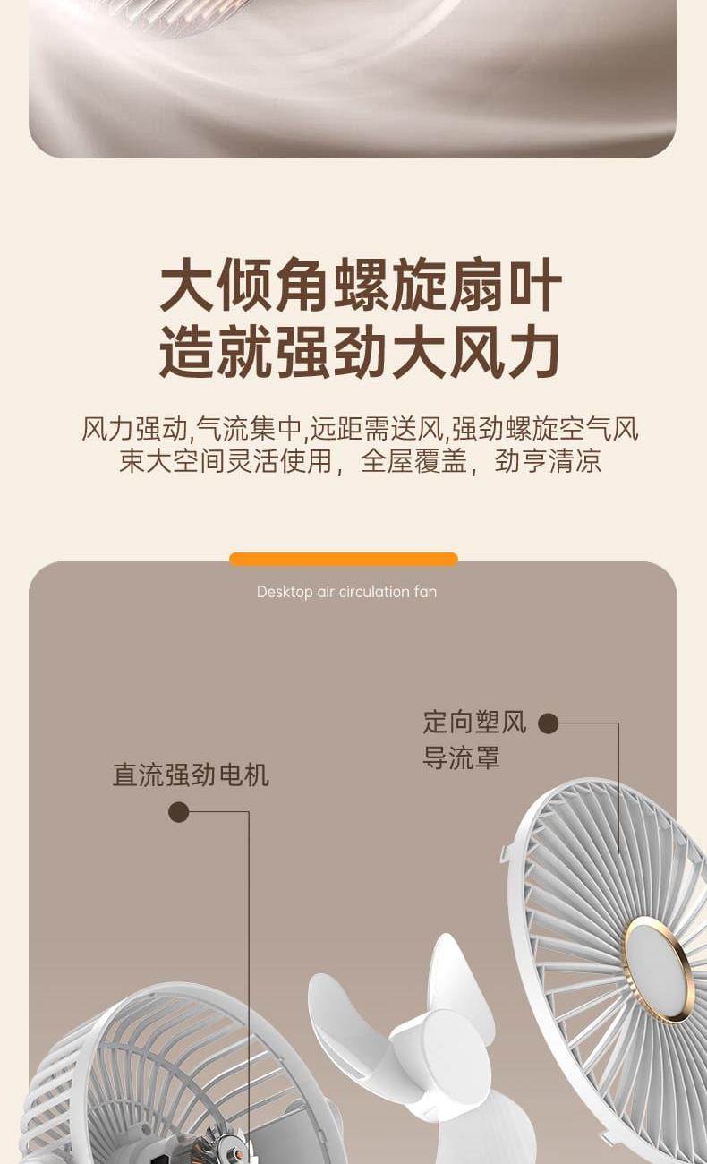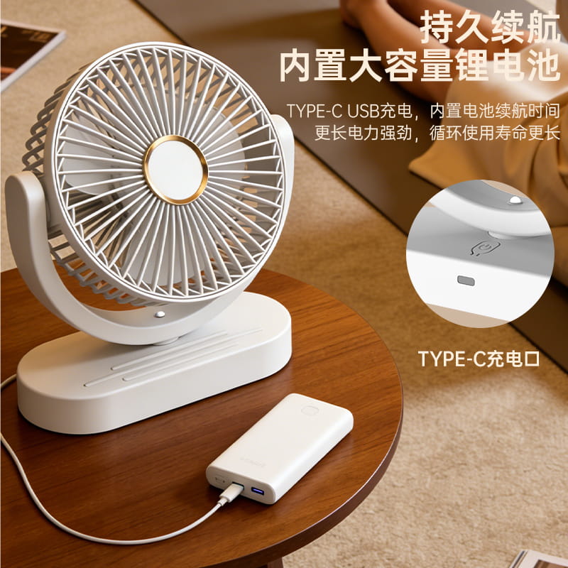 电池容量:1800mAh 产品重量:260g/344g 产品尺寸:20*7.5*17.5cm 包装尺寸:18*8.5*20.5cm 整箱数量:74*43.8*42.5cm/40个/15kg 产品颜色:白色、粉色、蓝色、卡其色 档风可调节,8英寸大网罩 内置电池,静音无刷电机,便携使用