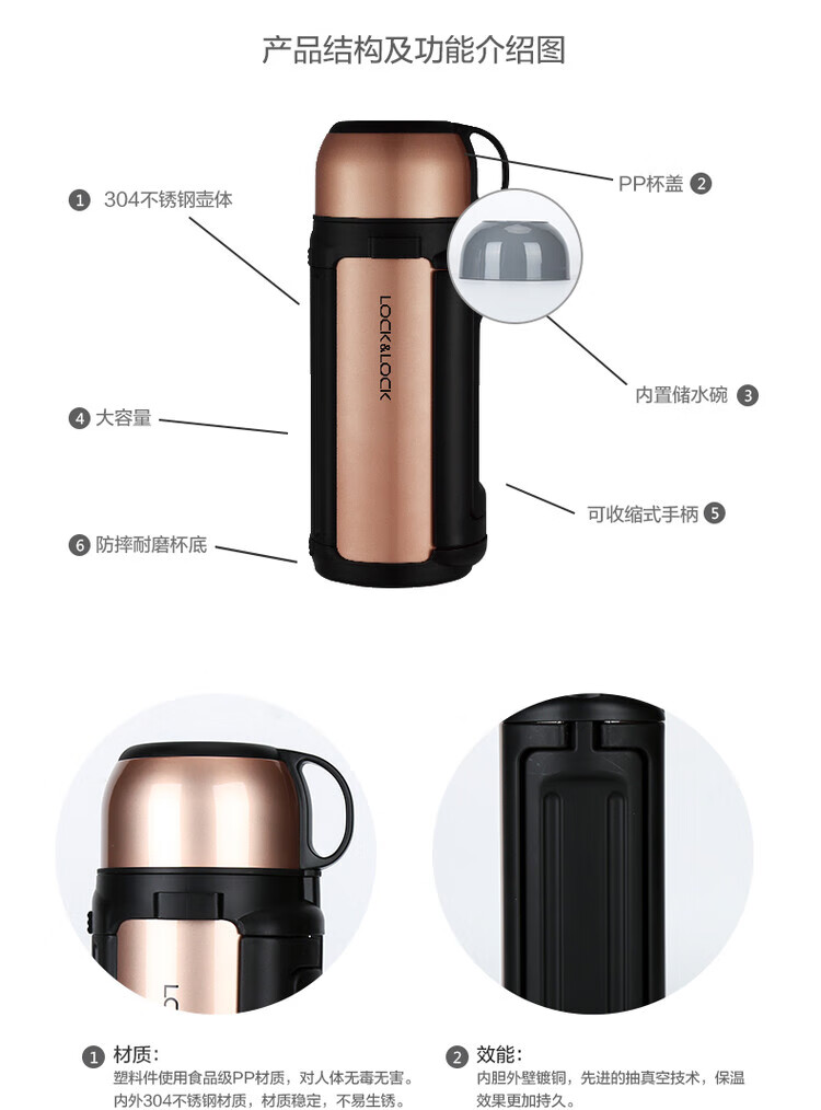 产品特点: 容量:1.5L 颜色:黑/蓝/红 产品尺寸:110*310mm 内外304不锈钢材质,高效持久保温 壶身可收缩手柄,舒适防滑 一键式按键,使用方便 实用性配置,多种规格,满足您的日常需求