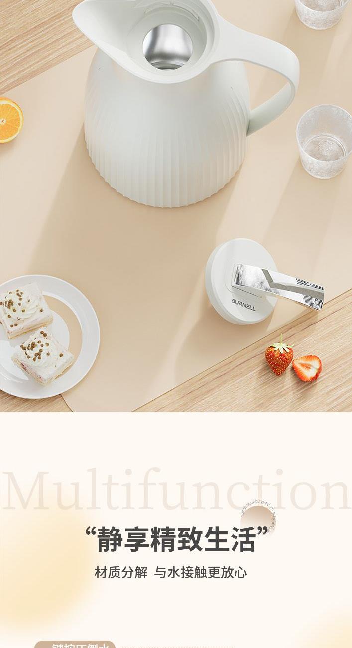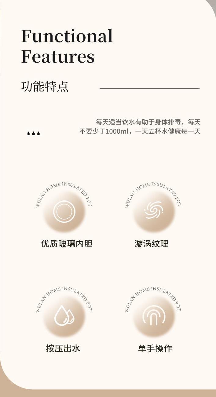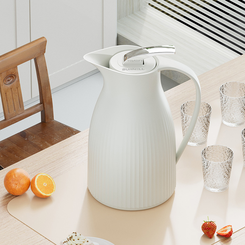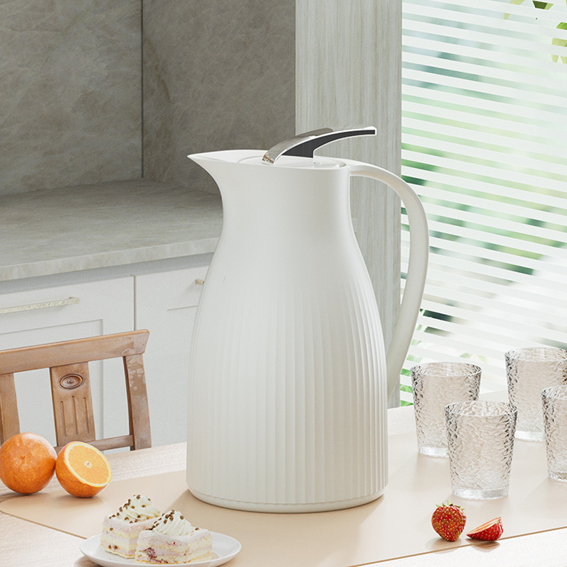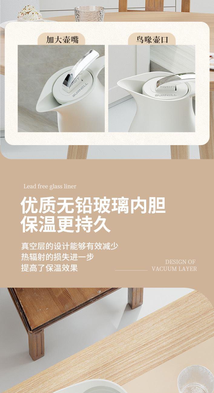 材 质:优质无铅玻璃+食品级pp 配 置:保温壶*1;玻璃杯*4 规 格:1000ml;200ml *4 颜 色:烟云白 装 箱 数:12pcs/箱
