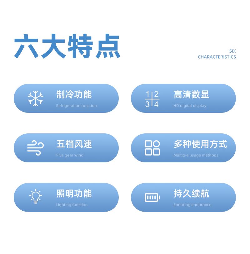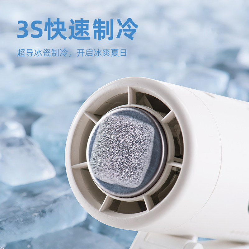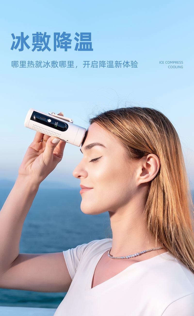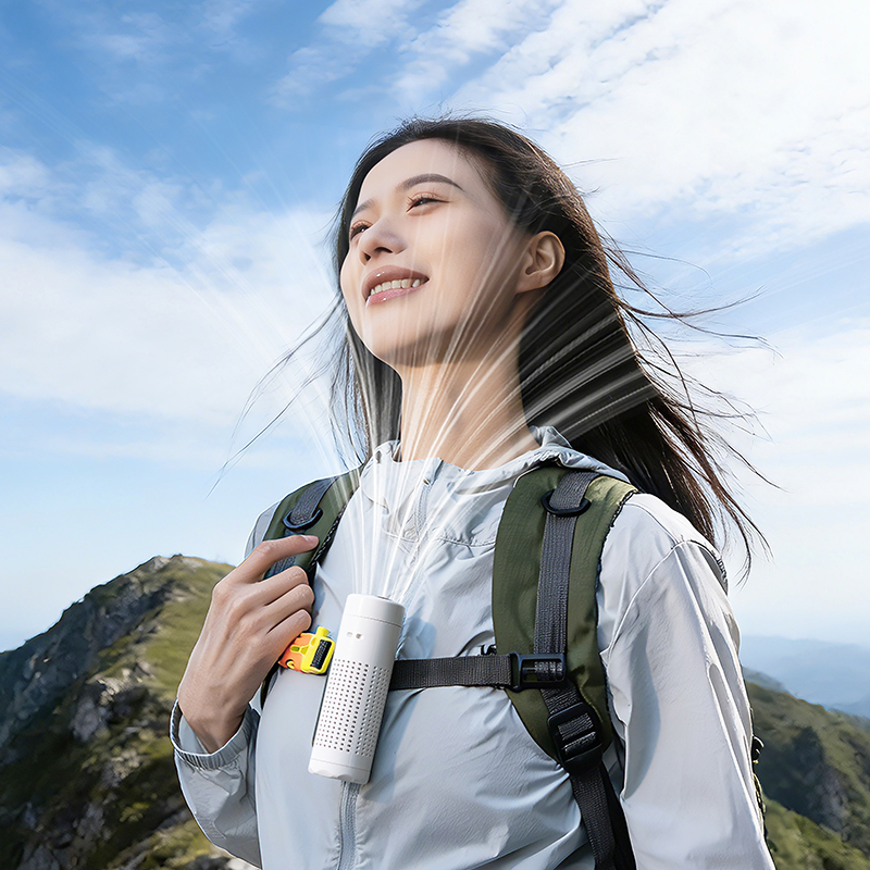 *多功能超轻制冷小风扇,仅140g *智能数显,20000转速真高速无刷电机 *高亮度LED手电筒,3000毫安 *5档大风力,可挂脖、可挂腰、可桌面、可手持 *360°进风口手心也降温
