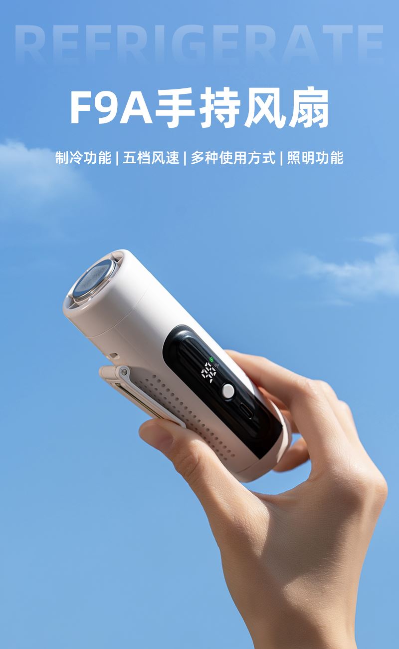 右心新款F9超轻便携式制冷多功能手持挂腰风扇